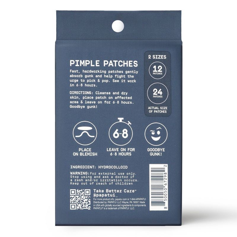 Fight blemishes fast with PAPATUI Men's Pimple Patches. These hardworking patches absorb gunk in just 6-8 hours, helping you resist the urge to pick or pop. Powered by dermatologist-tested Hydrocolloi…