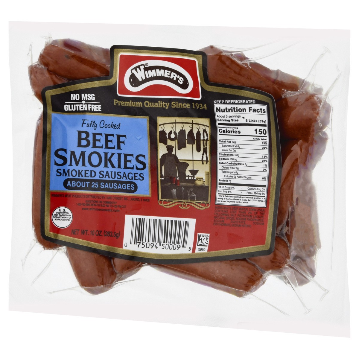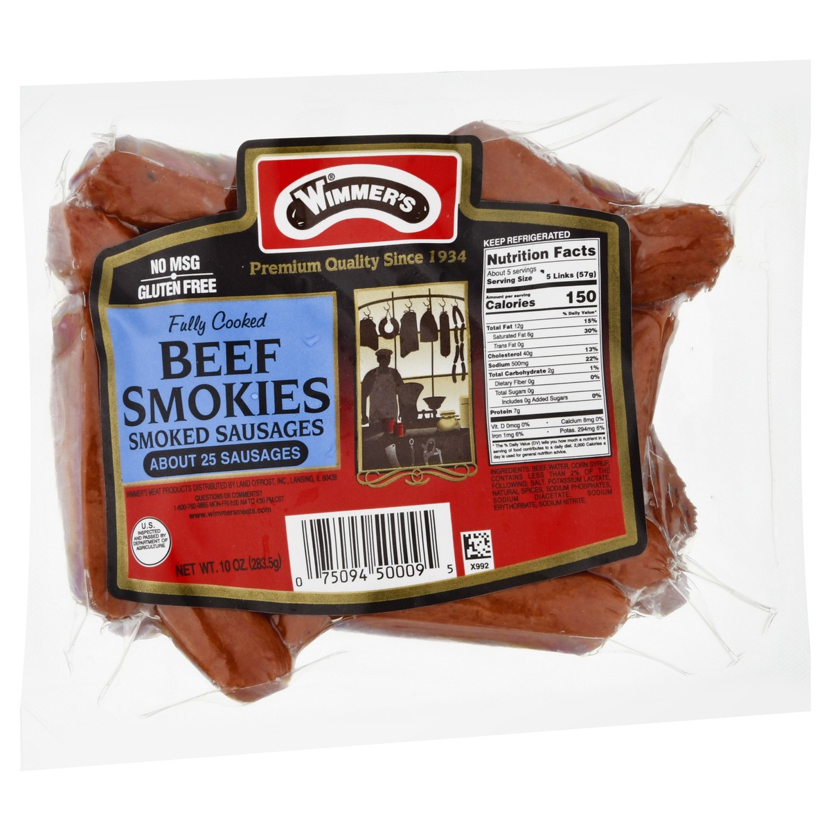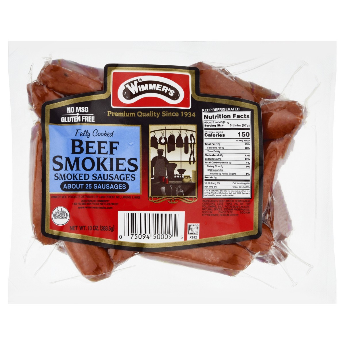 Gluten free. Premium quality since 1934. About 25 Sausages. No MSG. Fully cooked. U.S. Inspected and Passed by Department of Agriculture. www.wimmersmeats.com. Questions or comments? 1-800-762-9865 Mo…
