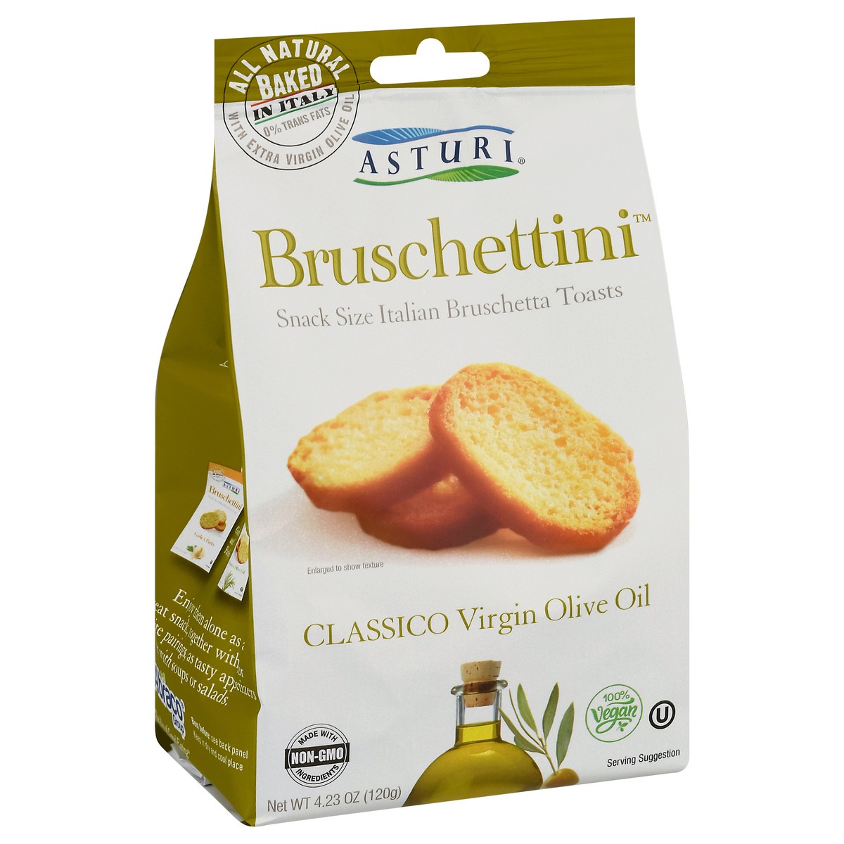 All natural. With extra virgin olive oil. The joy of good eating. Our all natural Asturi Bruschettinis originate from the scenic region of Piedmont in Northern Italy - a breathtaking land with towns n…