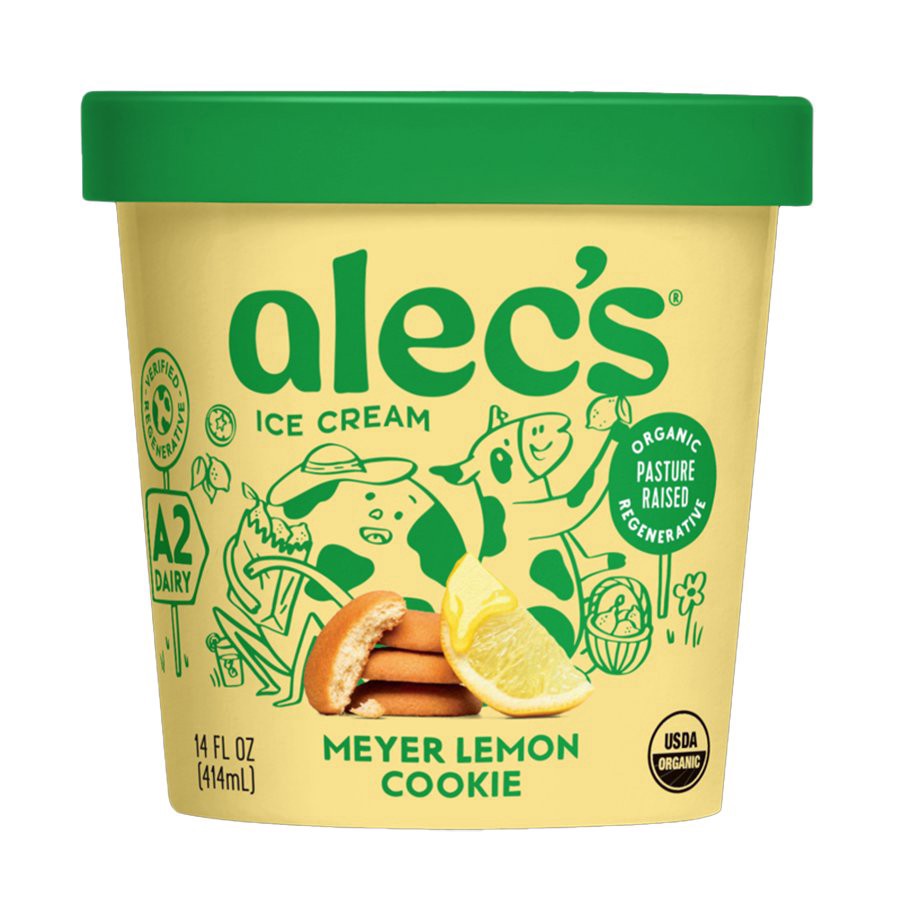 Meet Meyer Lemon Cookie: Smooth organic Meyer lemon ice cream, sweet lemon curd swirl, and a crispy lemon cookie.
