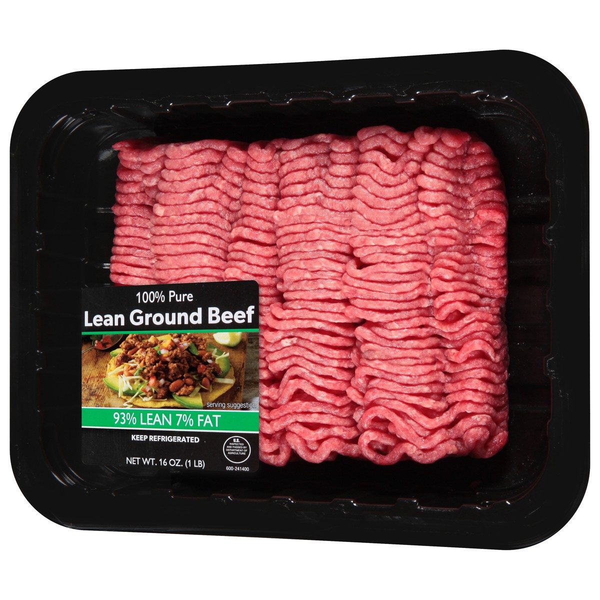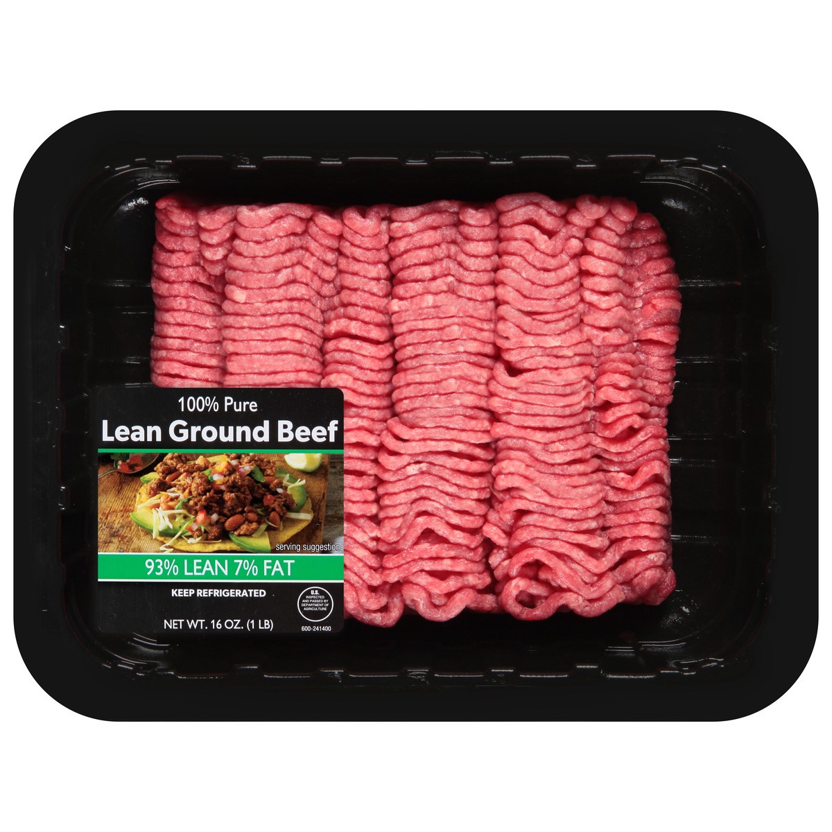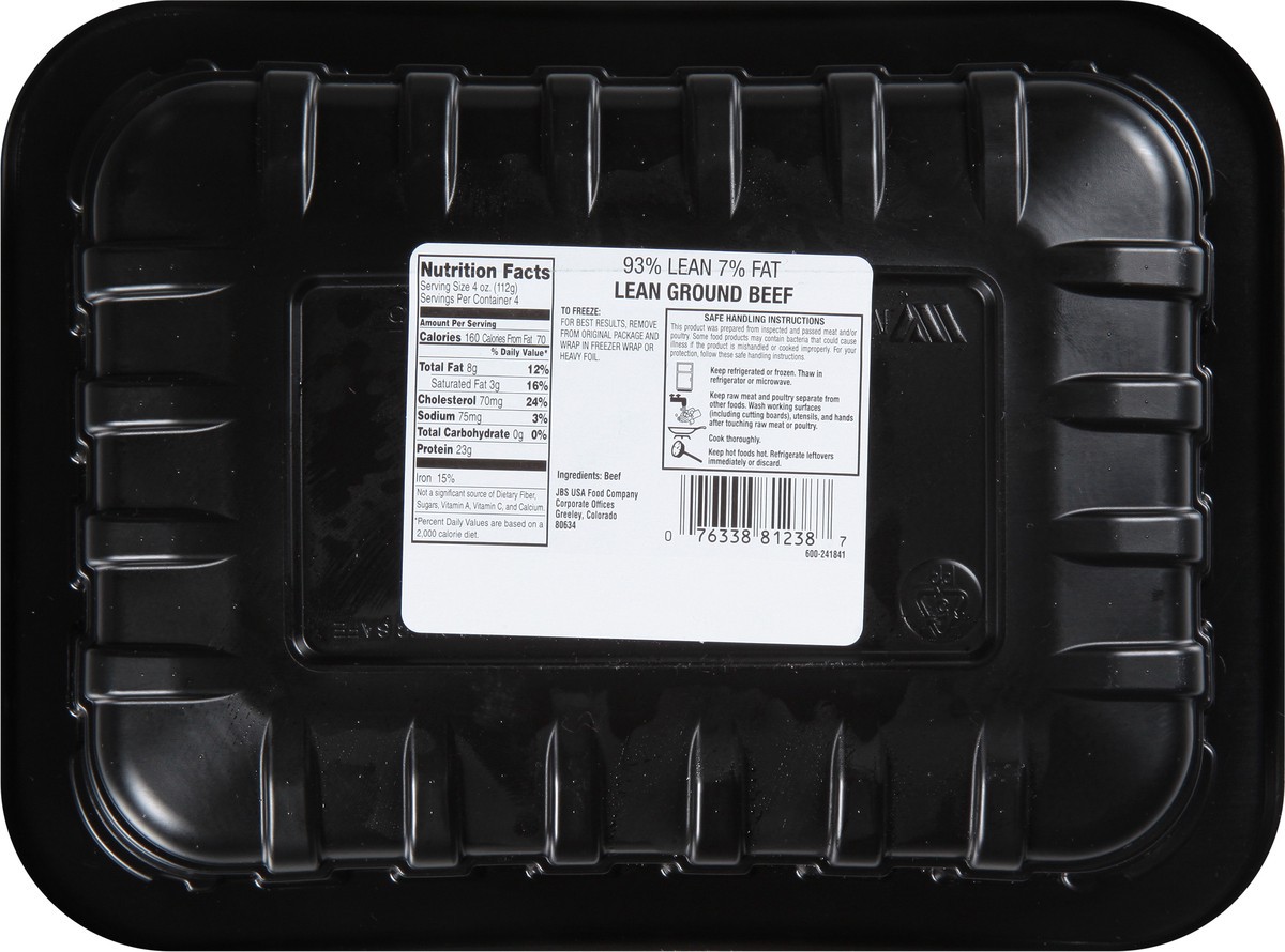 JBS USA 93%/7% 100% Pure Lean Ground Beef 16 oz, Lean protein. JBS USA 93% Lean Ground Beef offers premium beef flavor with minimal fat. A heart-healthy choice for tacos, chili, and meat sauce.