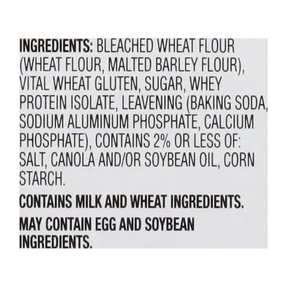 Bleached Wheat Flour (Wheat Flour, Malted Barley Flour), Vital Wheat Gluten, Sugar, Whey Protein Isolate, Leavening (Baking Soda, Sodium Aluminum Phosphate, Calcium Phosphate), Contains 2% or Less of:…