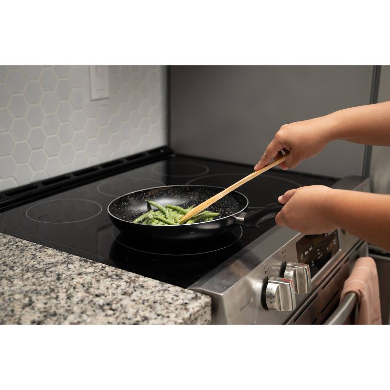 The IMUSA 10" Bistro Ceramic Fry Pan is an essential piece in every kitchen. This frypan is made of aluminum with an elegant black exterior and black-speckled ceramic interior, promoting healthier coo…