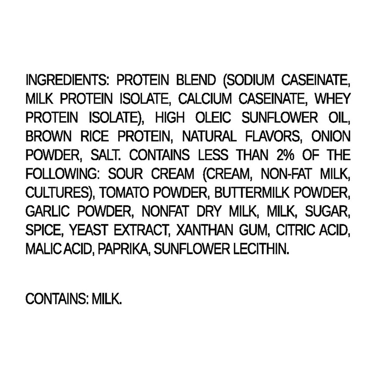 Protein Blend (Sodium Caseinate, Milk Protein Isolate, Calcium Caseinate, Whey Protein Isolate), High Oleic Sunflower Oil, Brown Rice Protein, Natural Flavors, Onion Powder, Salt, Contains Less than 2…