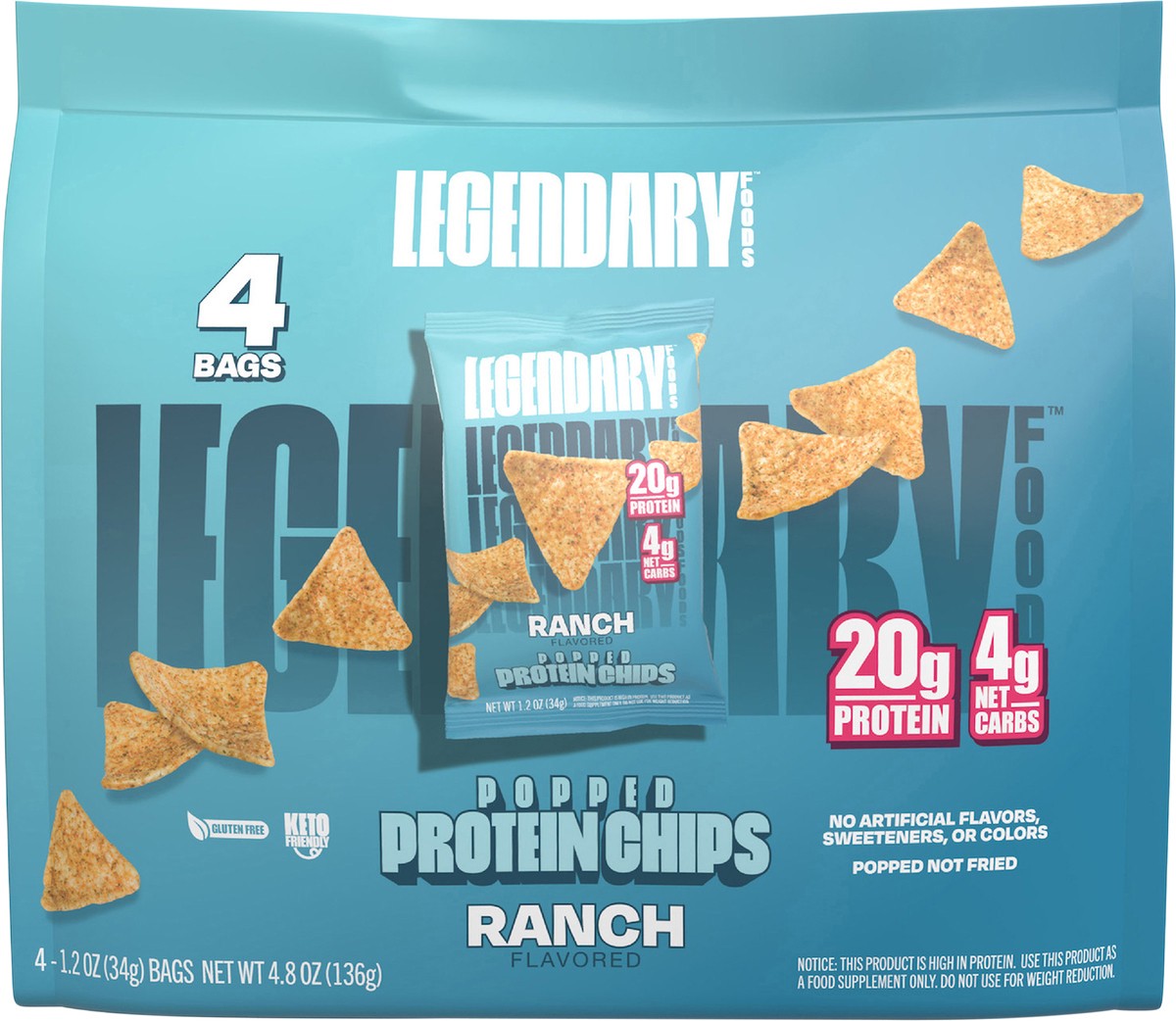 Legendary Foods Popped Ranch Flavored Protein Chips, 4 - 1.2 oz Bags