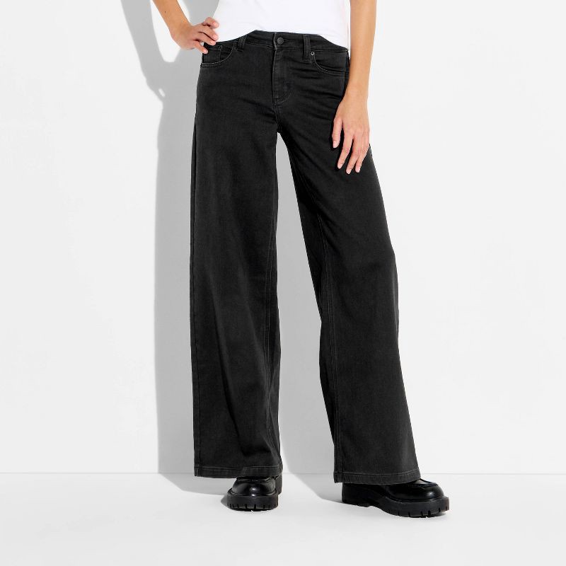 Women's Mid-Rise Lowkey Wide Leg Jeans - Wild Fable™ Black Wash 6