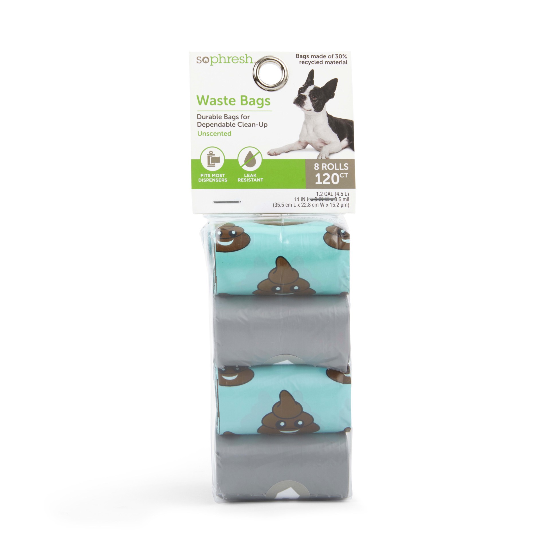The So Phresh Blue & Grey Poop Face Unscented Waste Bags have the scoop on convenience. These bags are durable, leak-resistant, and fit in most dispensers, making it a walk in the park to pick up afte…