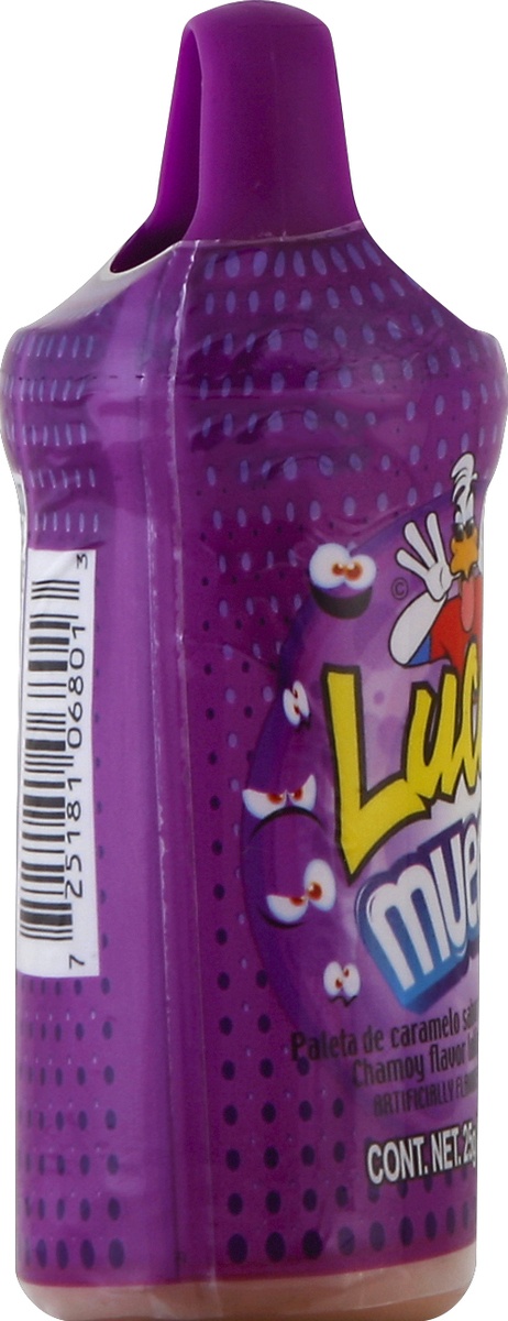 Chamoy flavor lollipop with chili powder. Artificially flavored. For Nutritional Information: USA 1-866-58 Lucas. www.lucas.com.mx. Made in Mexico.
