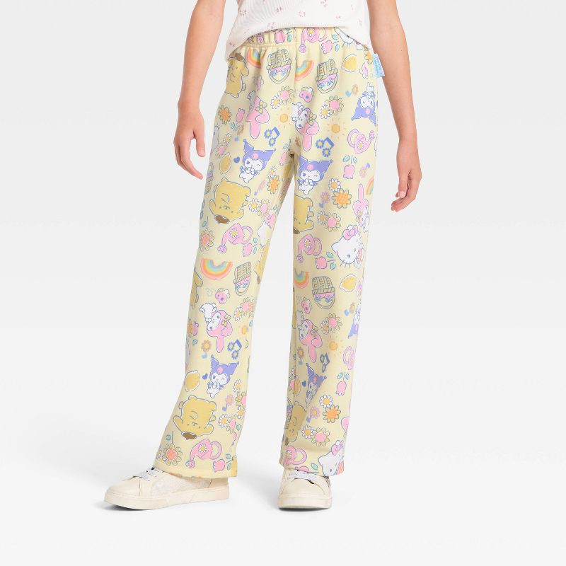 Sanrio Girls' Hello Kitty and Friends Printed Fleece Wide Leg Sweatpants - Light Yellow XS