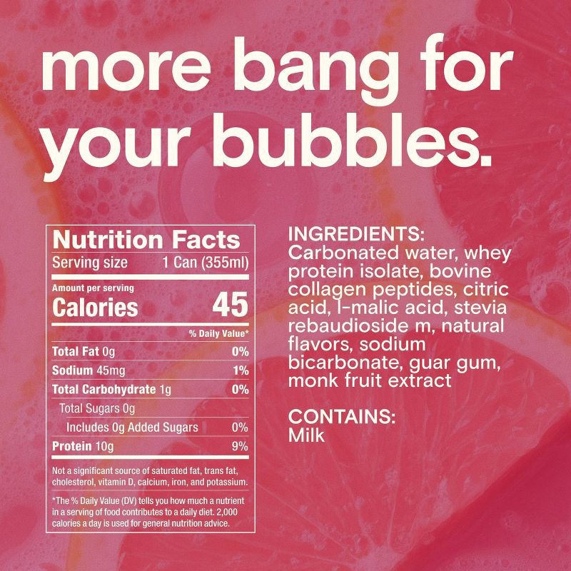 - Sparkling Protein Drink: 10g protein, 0g sugar, and 45 calories