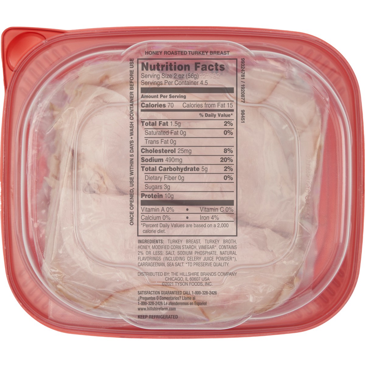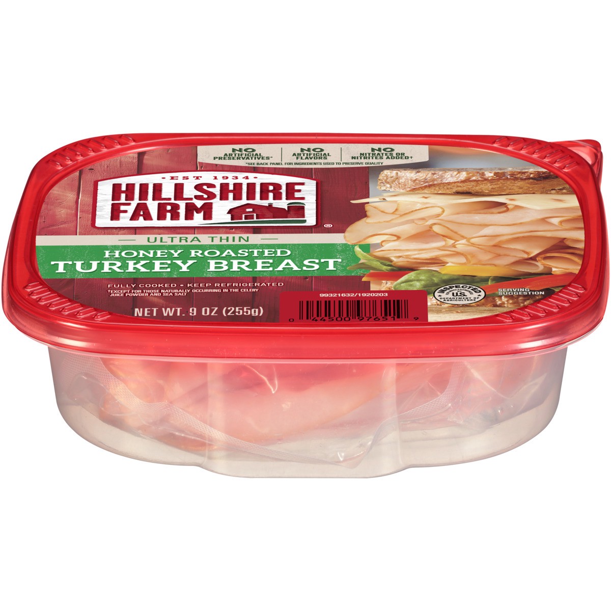 Enjoy premium sliced turkey at home with Hillshire Farm Ultra Thin Sliced Deli Lunch Meat, Honey Roasted Turkey Breast. Made with slow cooked, oven roasted turkey sweetened with honey and no artificia…