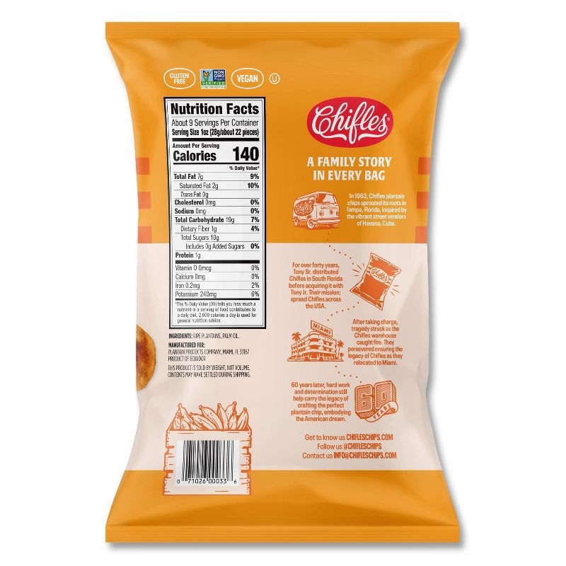 - Gluten Free and Nut Free: No wheat products, tree nuts or peanuts enter our production facility, which means all Chifles products are gluten-free and safe for consumers with nut allergies.