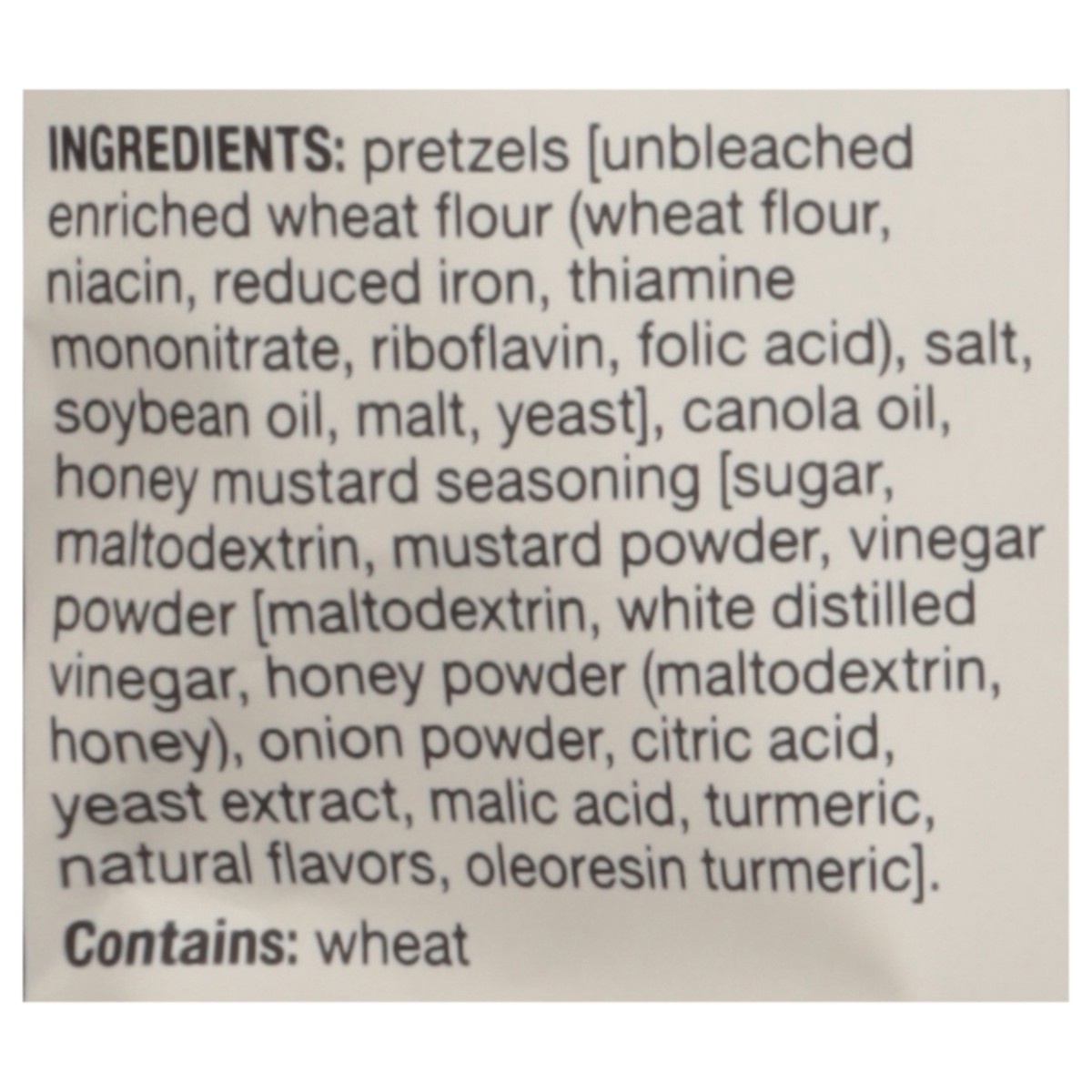 Pretzels [Unbleached Enriched Wheat Flour (Wheat Flour, Niacin, Reduced Iron, Thiamine Mononitrate, Riboflavin, Folic Acid), Salt, Soybean Oil, Malt, Yeast], Canola Oil, Honey Mustard Seasoning [Sugar…
