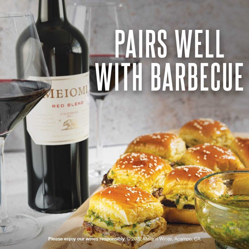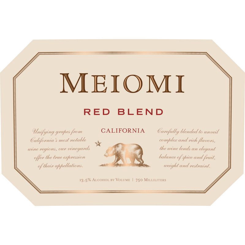 - One 750ml bottle of Meiomi Red Blend Red Wine, containing five 5 fl. oz. glasses of wine