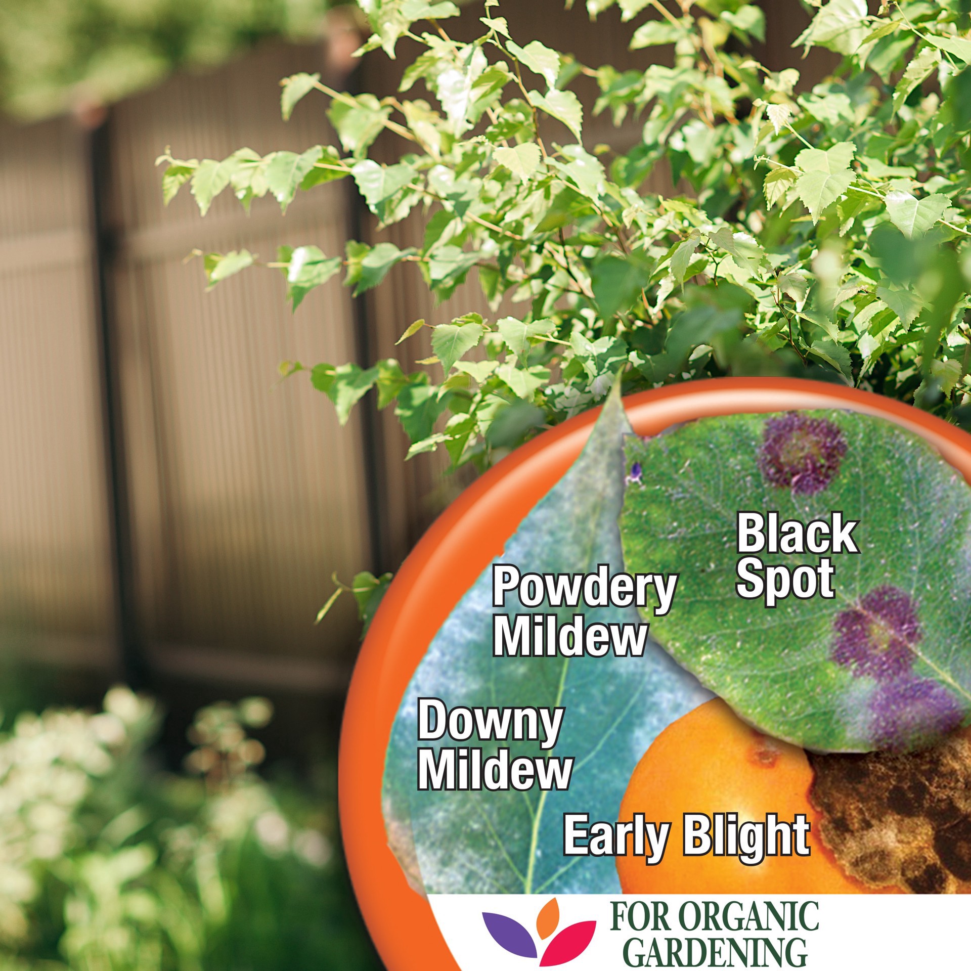 Controls powdery mildew, downy mildew, black spot, peach leaf curl, rust, and other listed diseases. Perfect for use on vegetables, roses, fruits, nuts, herbs, ornamentals, and turf. Incredibly easy t…