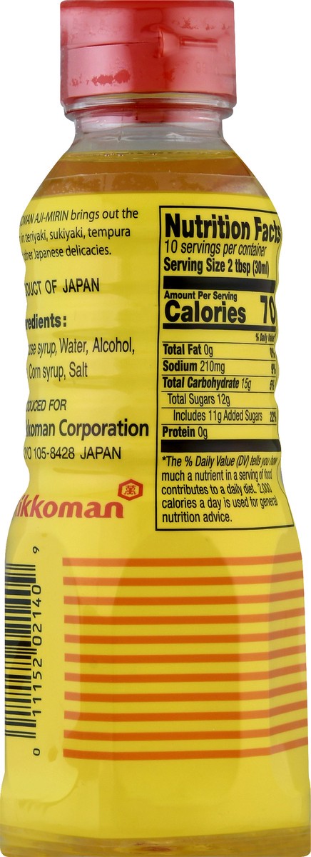 Salted and seasoned. Kikkoman Aji-Mirin brings out the flavor in teriyaki, sukiyaki, tempura and other Japanese delicates. Alcohol contents 8% by volume. Product of Japan.