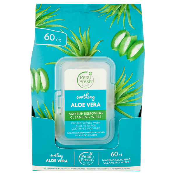 Petal Fresh Pure Makeup Removing Soothing Aloe Vera Cleansing Wipes - 60 ct