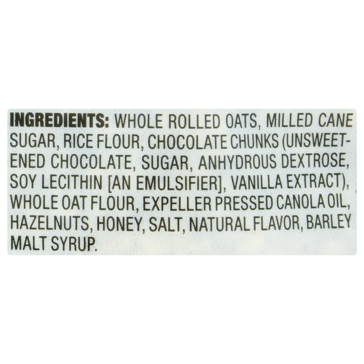 Whole Rolled Oats, Milled Cane Sugar, Rice Flour, Chocolate Chunks (Unsweetened Chocolate, Sugar, Anhydrous Dextrose, Soy Lecithin [an Emulsifier], Vanilla Extract), Whole Oat Flour, Expeller Pressed …