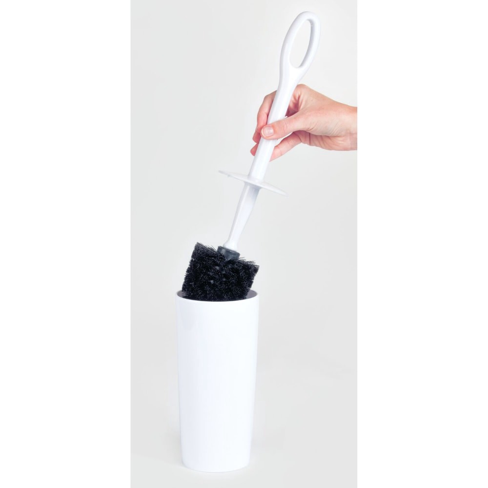 This attractive bowl brush is self-enclosed for aesthetics. The Moda bowl brush is made of durable and easy-to-clean plastic, and its brush head is removable for replacement. Holder neatly and discree…