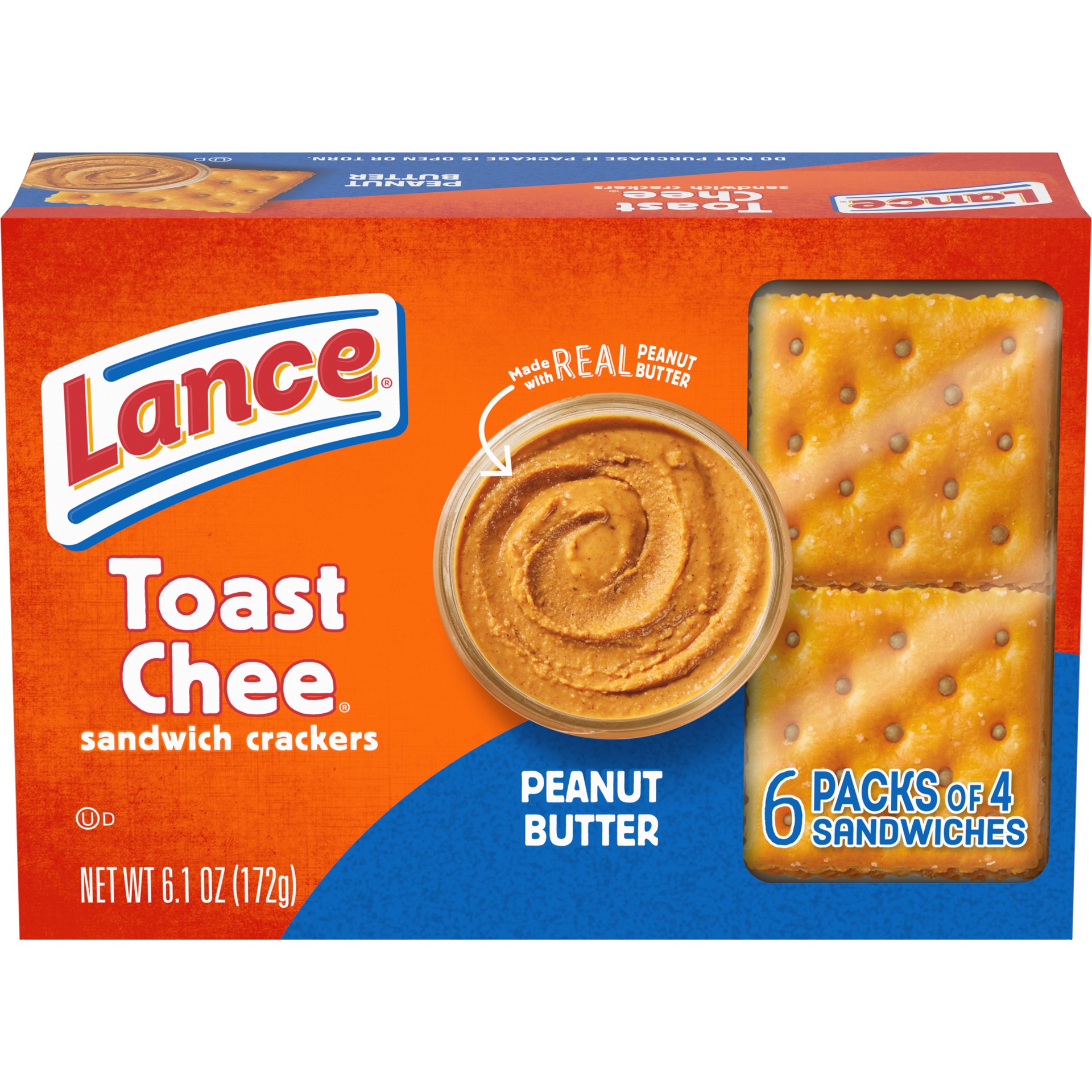 - PEANUT BUTTER SANDWICH CRACKERS: Classic orange ToastChee crackers with peanut butter filling are a delicious snack