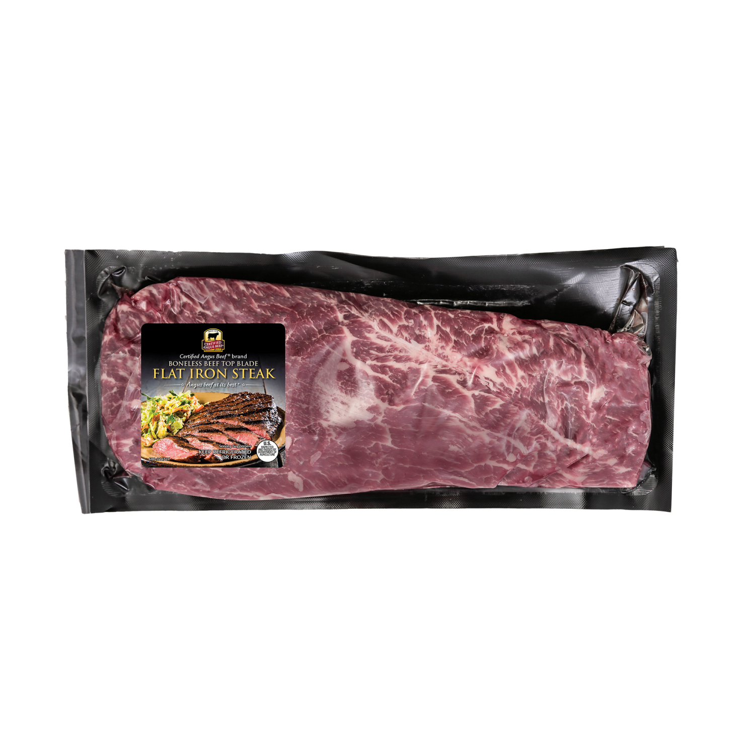 Second in tenderness to the tenderloin steak, the flat iron is well-marbled, richly flavored and juicy. Best when cooked to no more than medium doneness.