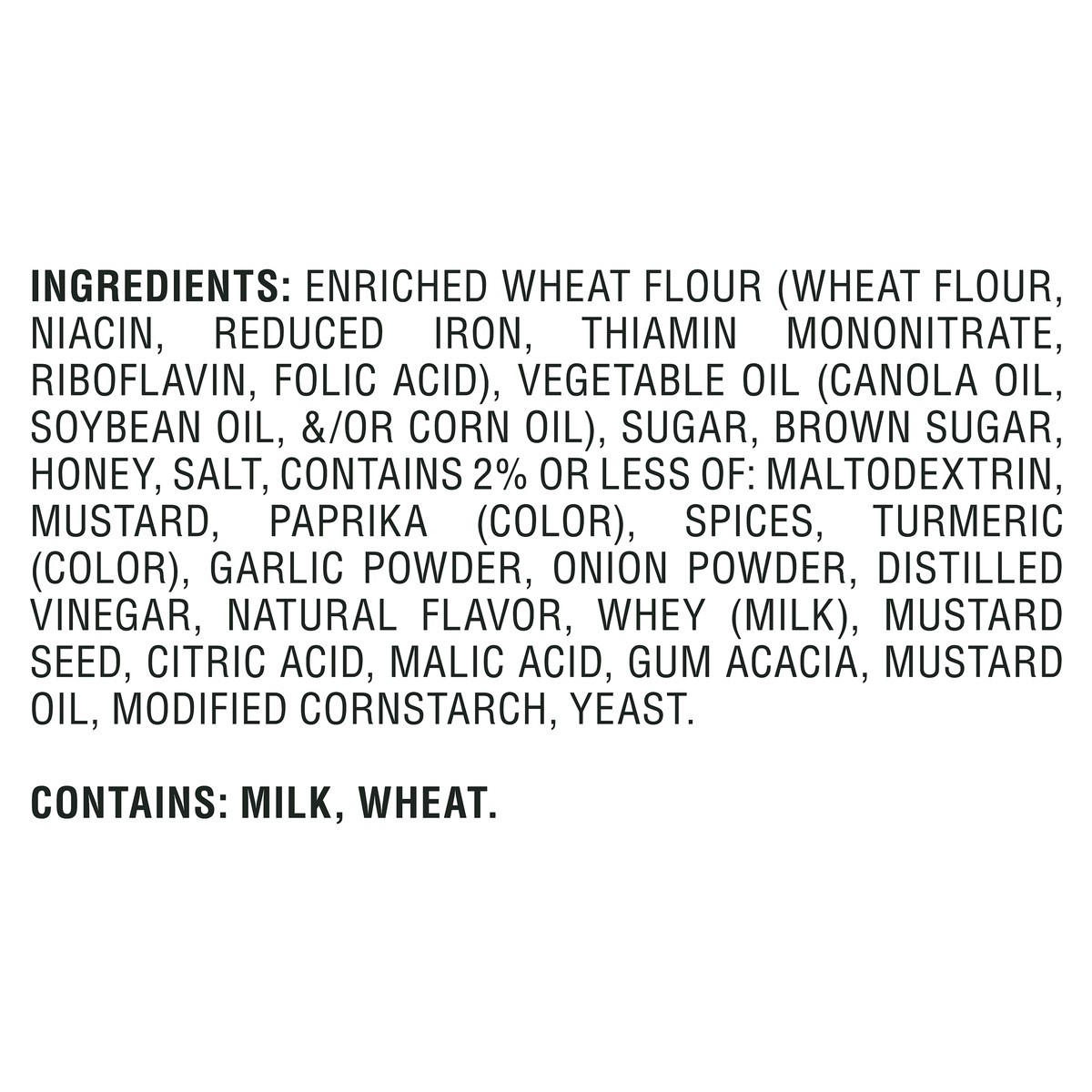 Enriched Wheat Flour (Wheat Flour, Niacin, Reduced Iron, Thiamin Mononitrate, Riboflavin, Folic Acid), Vegetable Oil (Canola Oil, Soybean Oil, &/or Corn Oil), Sugar, Brown Sugar, Honey, Salt, Contains…