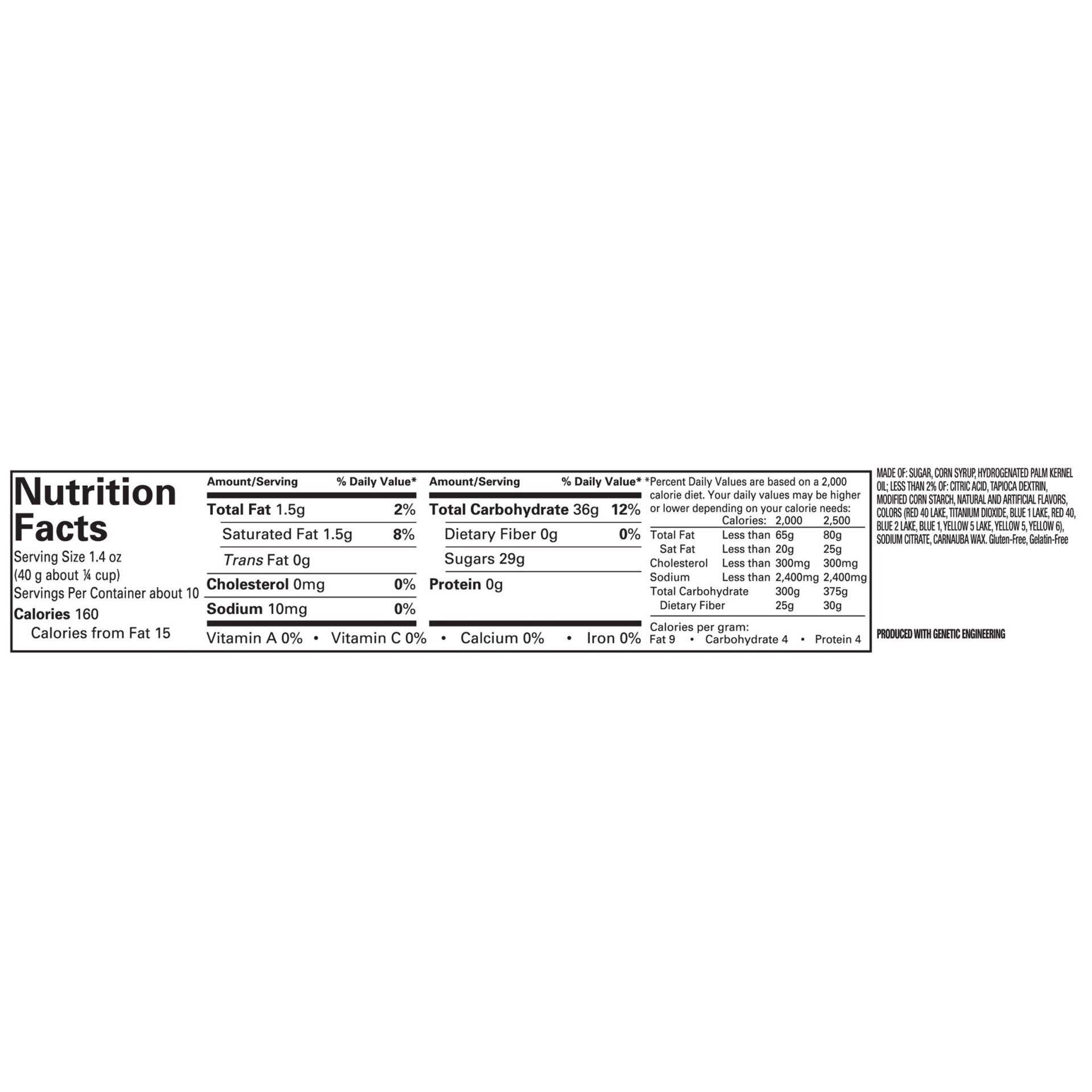 Xylitol, Gum Base; Less than 2% of: Natural and Artificial Flavors, Acacia, Aspartame, Soy Lecithin, Sorbitol, Acesulfame K, Coloring (Includes Blue 1), Sodium Bicarbonate, Carnauba Wax, BHT (to maint…