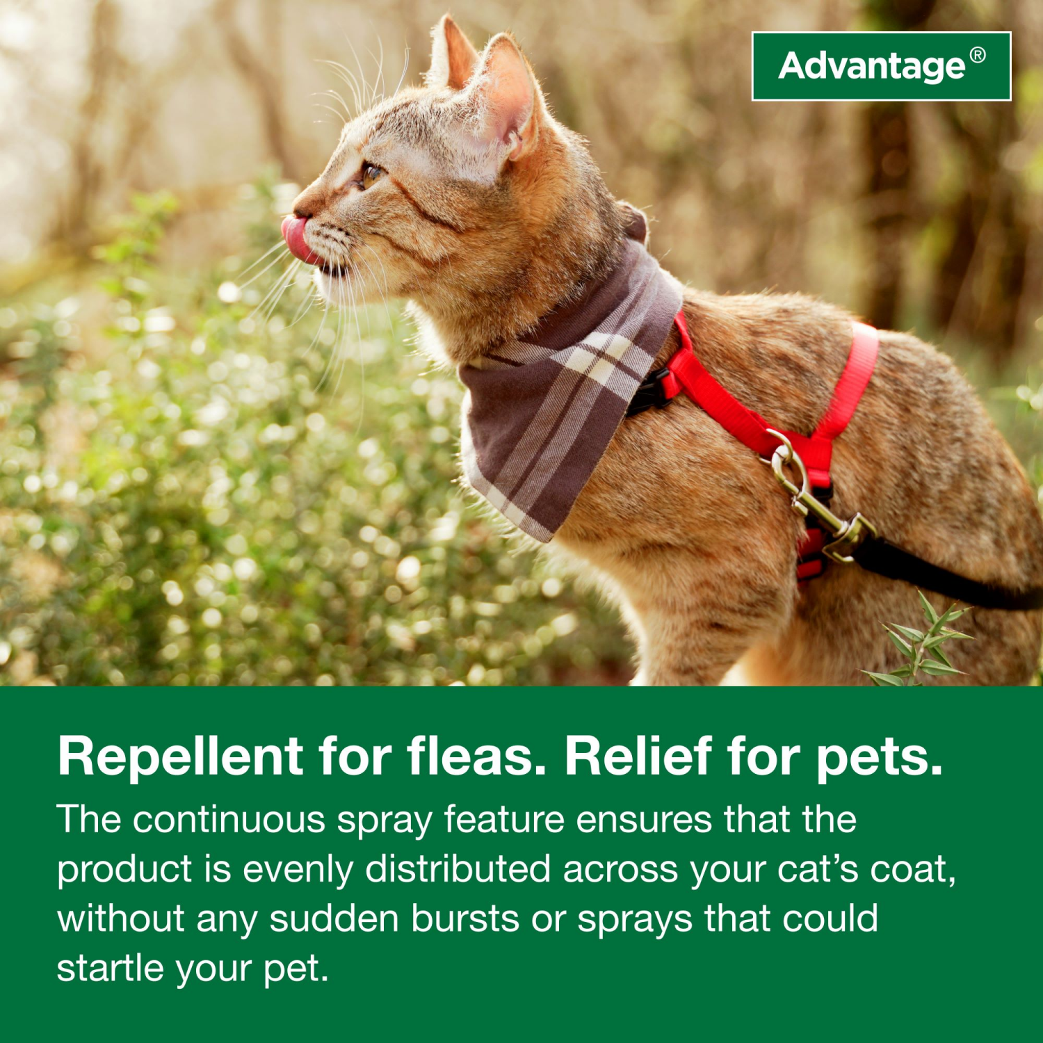 Advantage Treatment Spray kills and repels fleas, ticks and lice on cats over 7 months. Not only can this spray be applied directly to your cat, it can also be used to kill fleas hidden in carpets, ru…