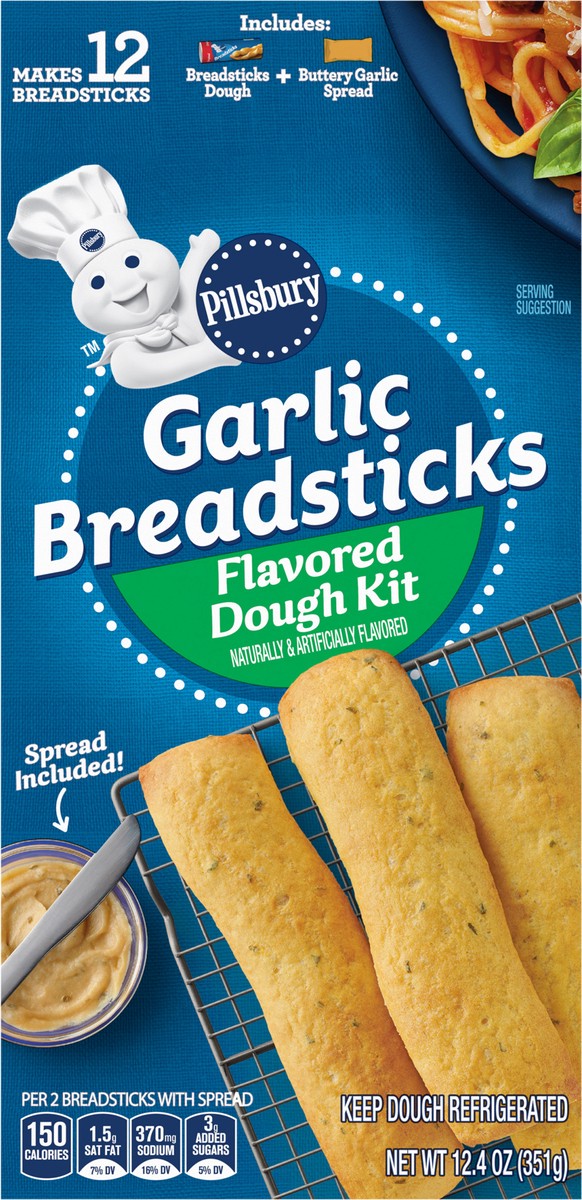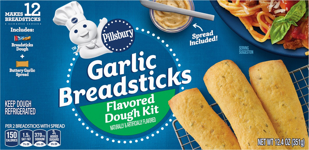 Savor the warm, inviting taste of garlic breadsticks without spending hours in the kitchen. Pillsbury Garlic Breadsticks Flavored Dough Kit comes with canned breadsticks dough plus buttery garlic spre…