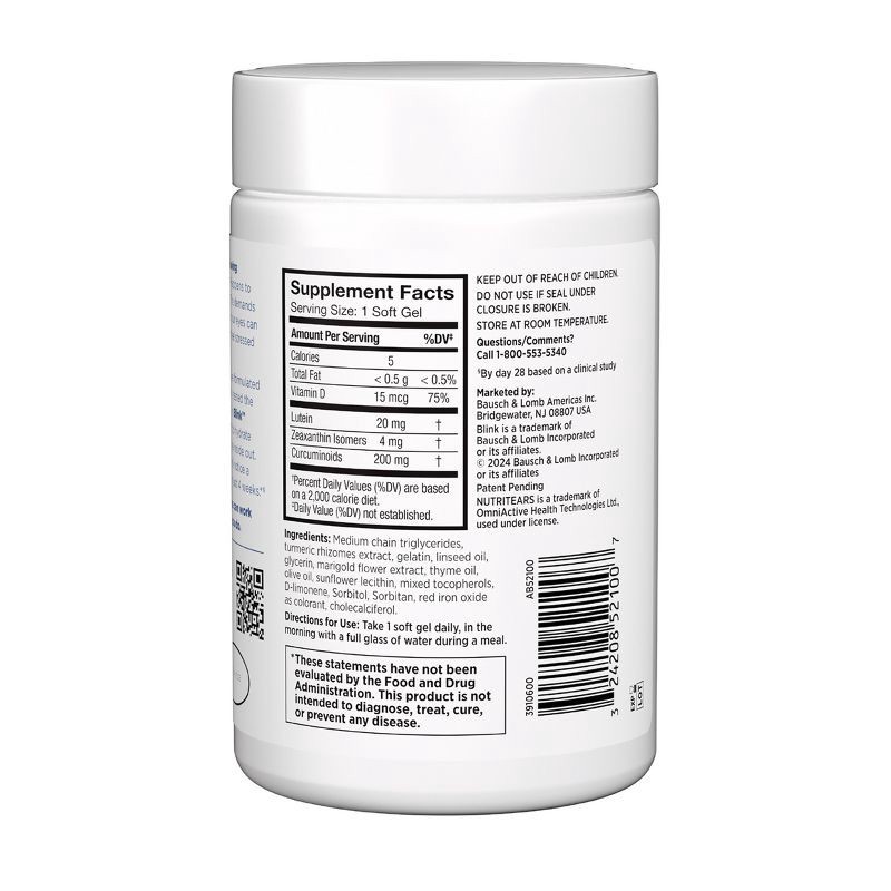 - PROPRIETARY FORMULA: Blink NutriTears is formulated with a unique blend of ingredients including lutein, zeaxanthin, curcumin and vitamin D.