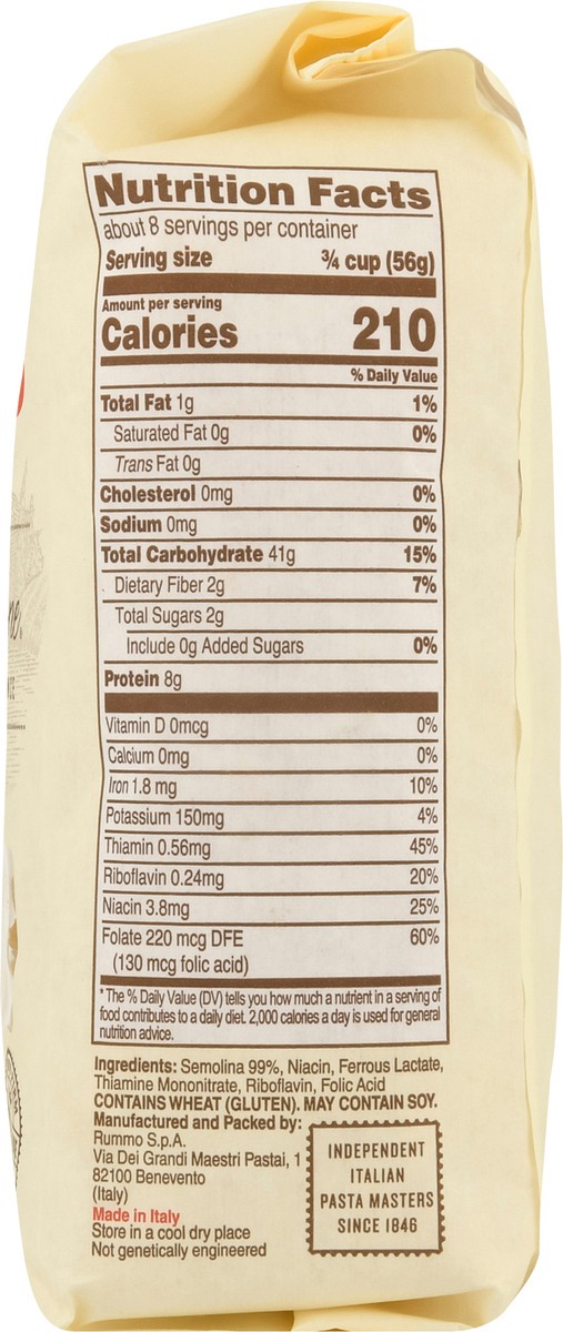 Semolina 99%, Niacin, Ferrous Lactate, Thiamine Mononitrate, Riboflavin, Folic Acid.
