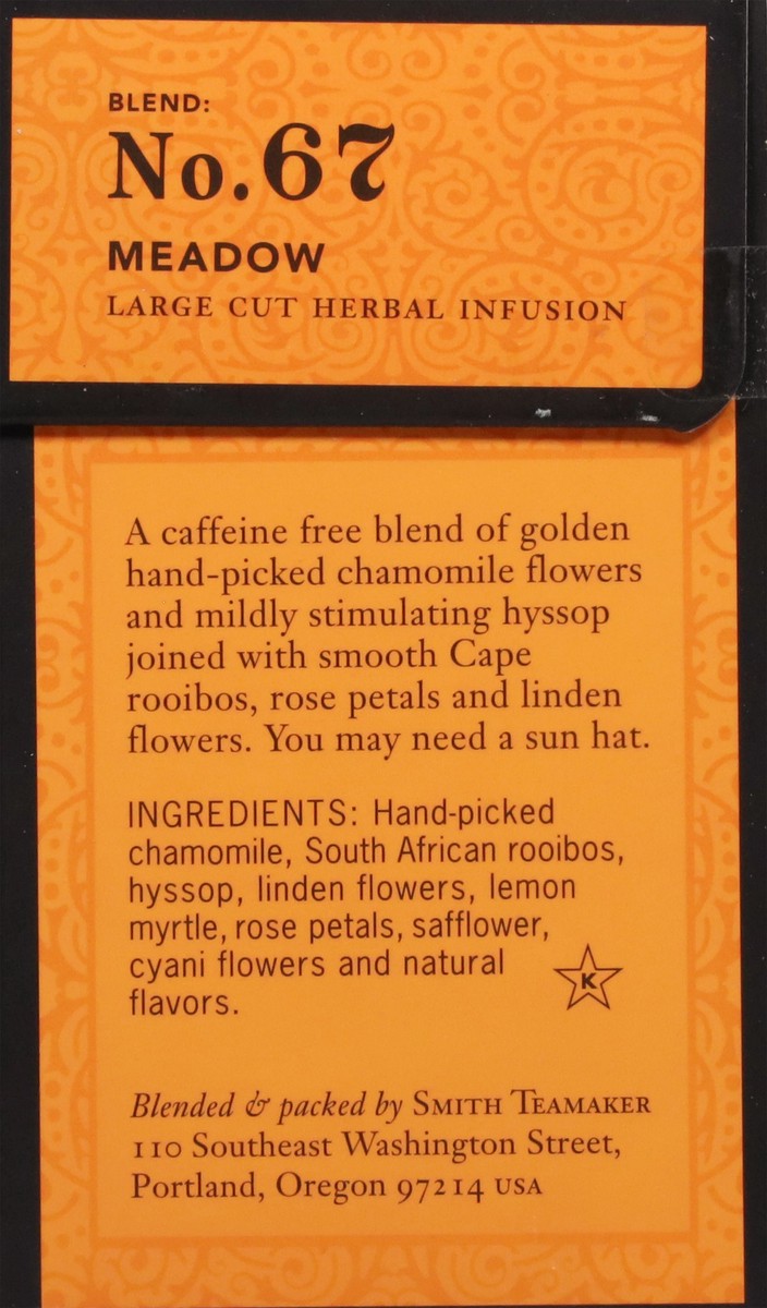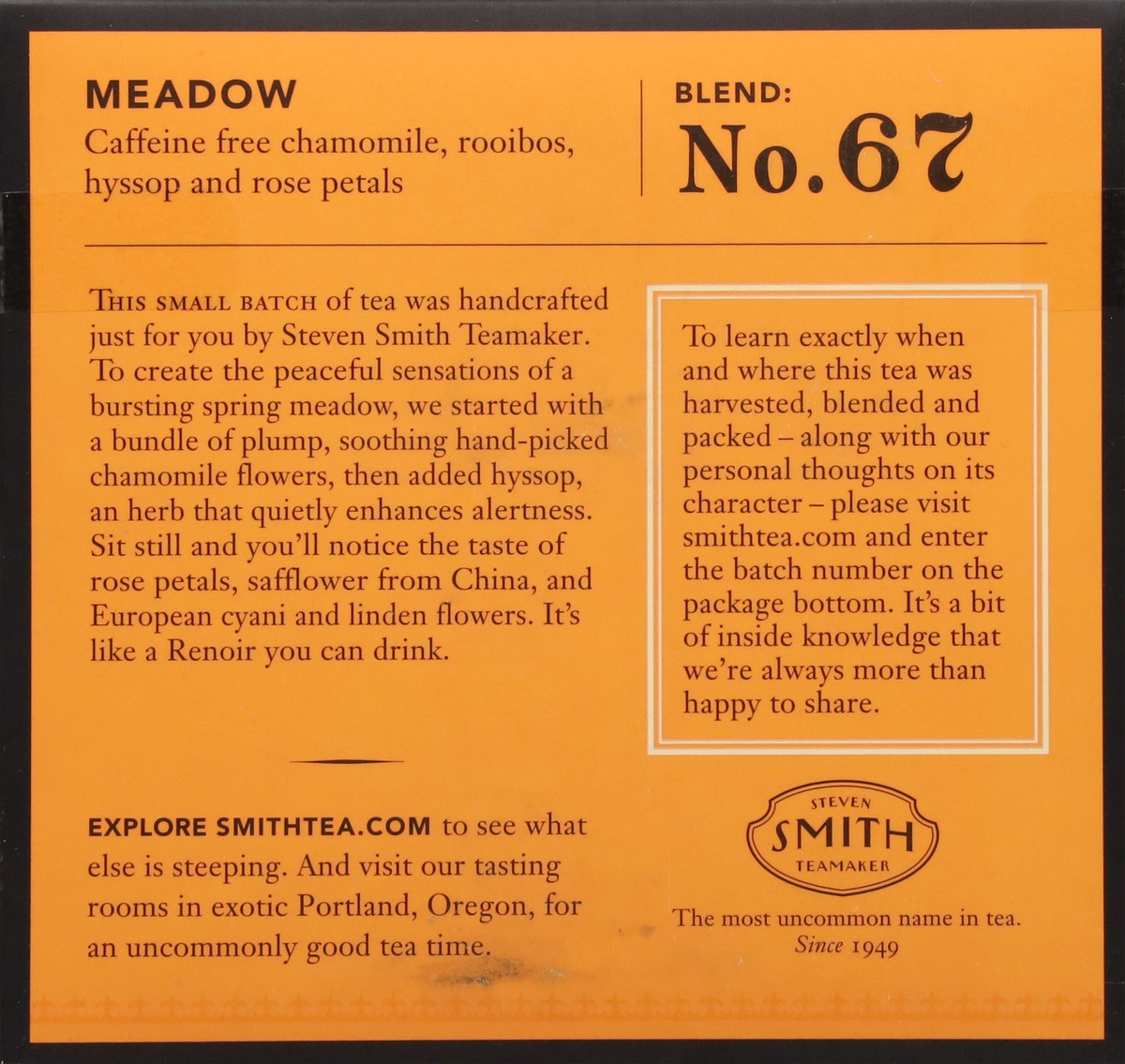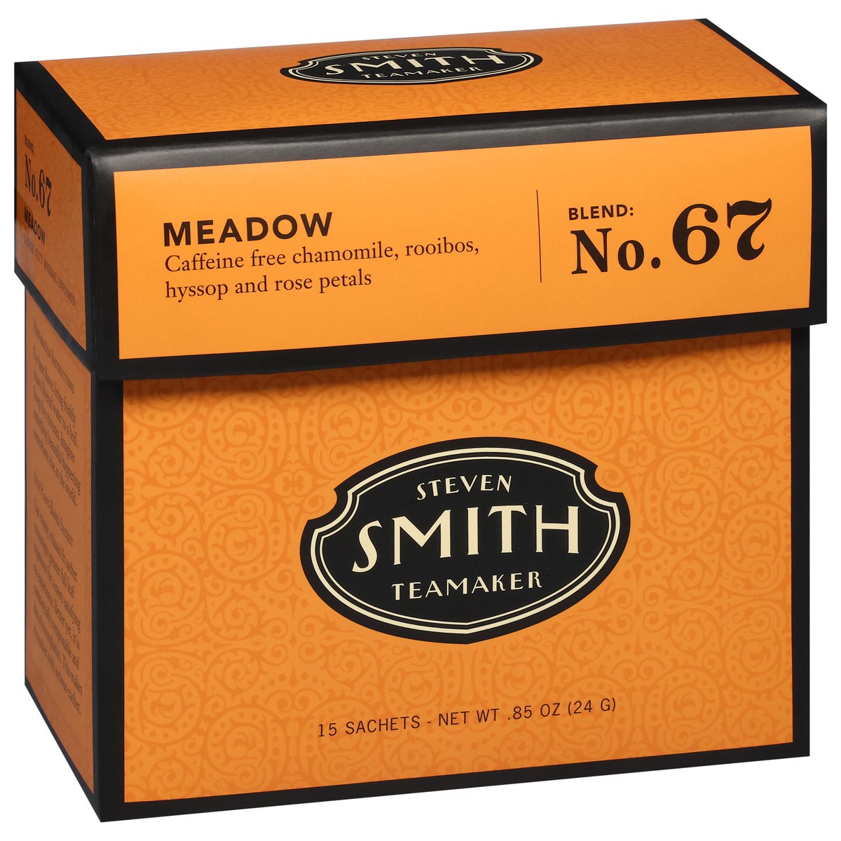 STEVEN SMITH TEAMAKER NO. 67 MEADOW TEA IS A CAFFEINE-FREE BREW OF CHAMOMILE, ROOIBOS, FRAGRANT HYSSOP AND ROSE PETALS. PERSONALLY CRAFTED BY STEVEN SMITH HIMSELF, THIS INVIGORATING BEVERAGE HELPS TO …