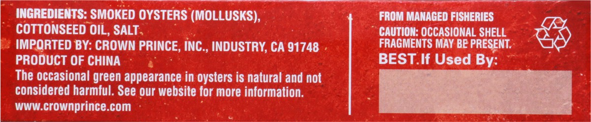 Crown Prince Fancy Whole Smoked Oysters in Cottonseed Oil 3.75 oz
