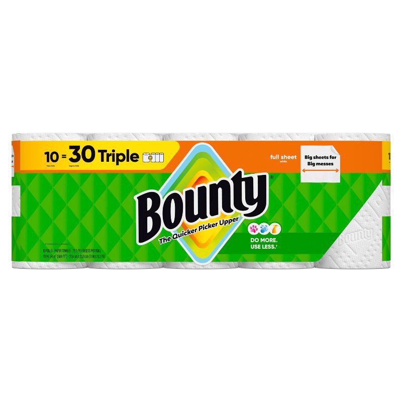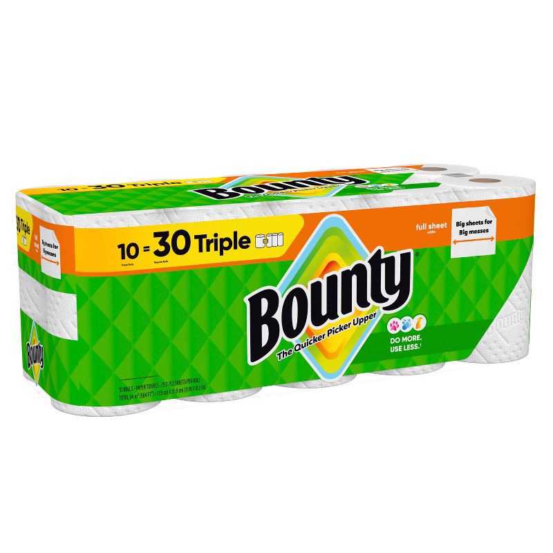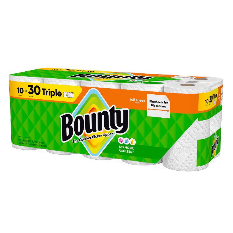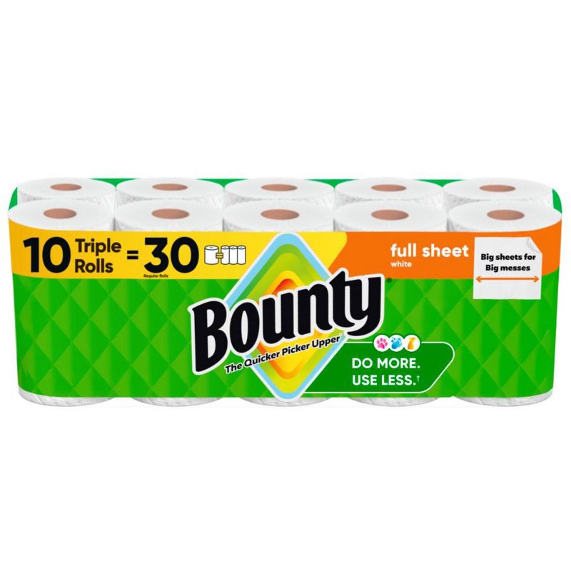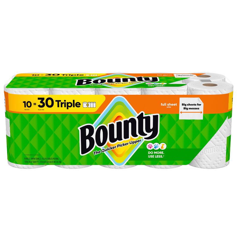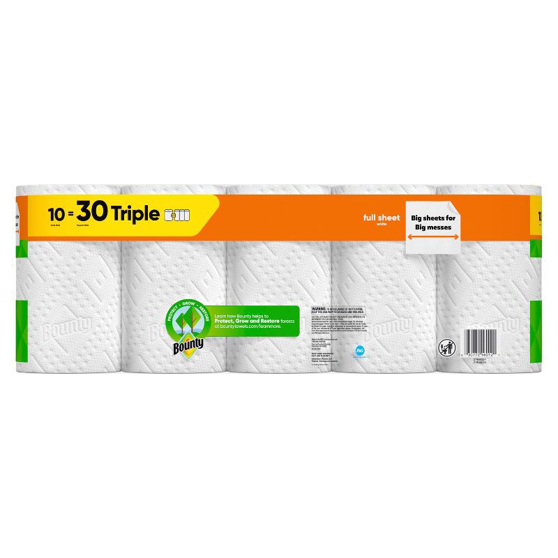 Bounty Full Sheet Paper Towels - 10 Triple Rolls - 2-Ply - 75 Sheets: No Fragrance Added, Dye-Free, Non-Toxic