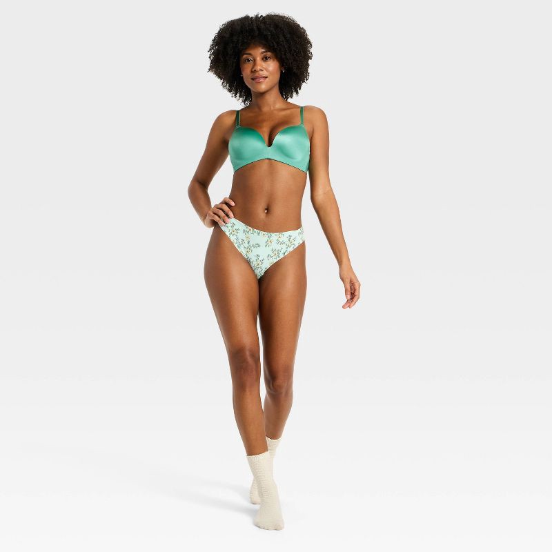 Women's Invisible Edge Thong Underwear - Auden™ Mint Floral S