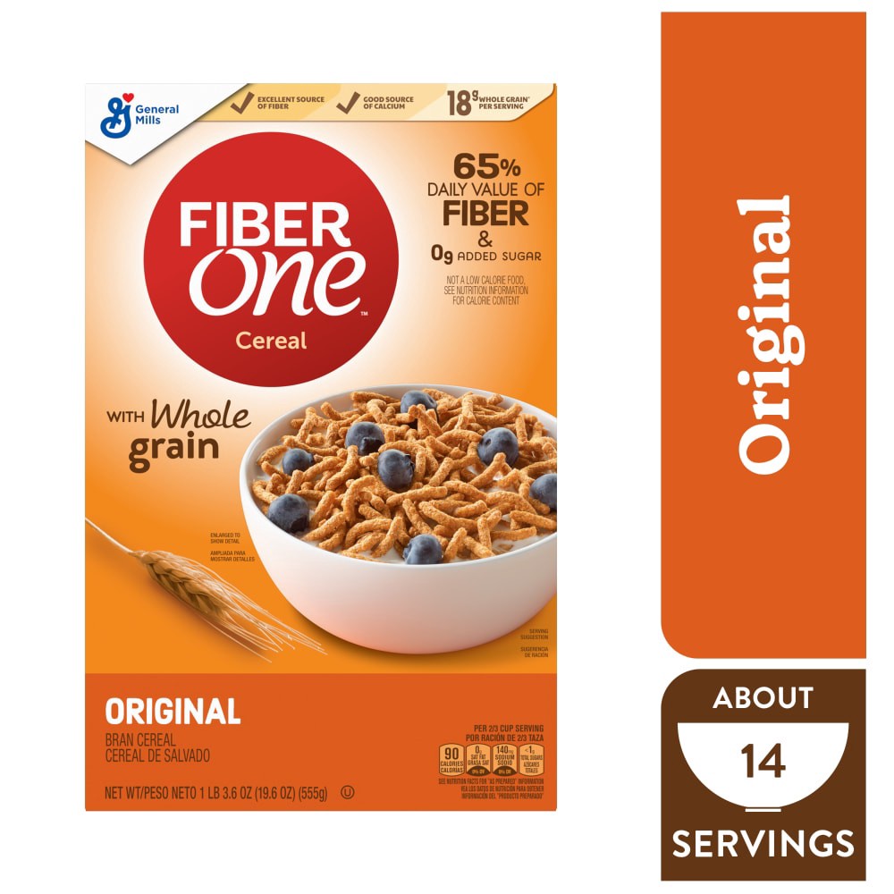 Fiber One Cereal, Original Bran, High Fiber Cereal Made with Whole Grain, 19.6 oz