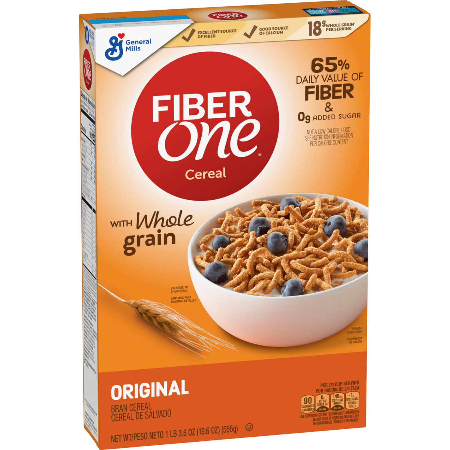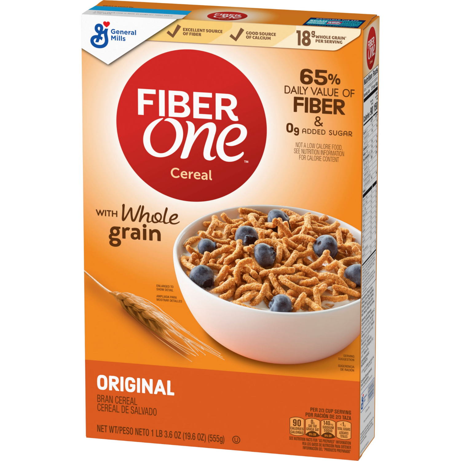 Fiber One Cereal, Original Bran, High Fiber Cereal Made with Whole Grain, 19.6 oz