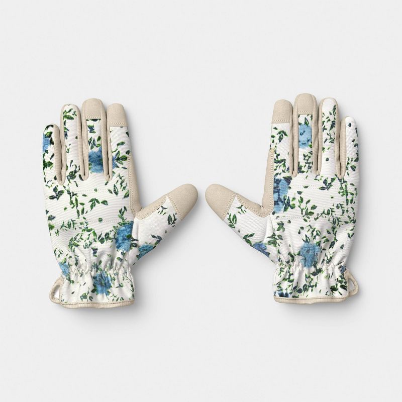 Keep your hands shielded and comfortable during all your gardening activities with these Duck Canvas Floral Ikat Blossom Pattern Work Gloves from Threshold™. Made from faux leather and cotton for comf…