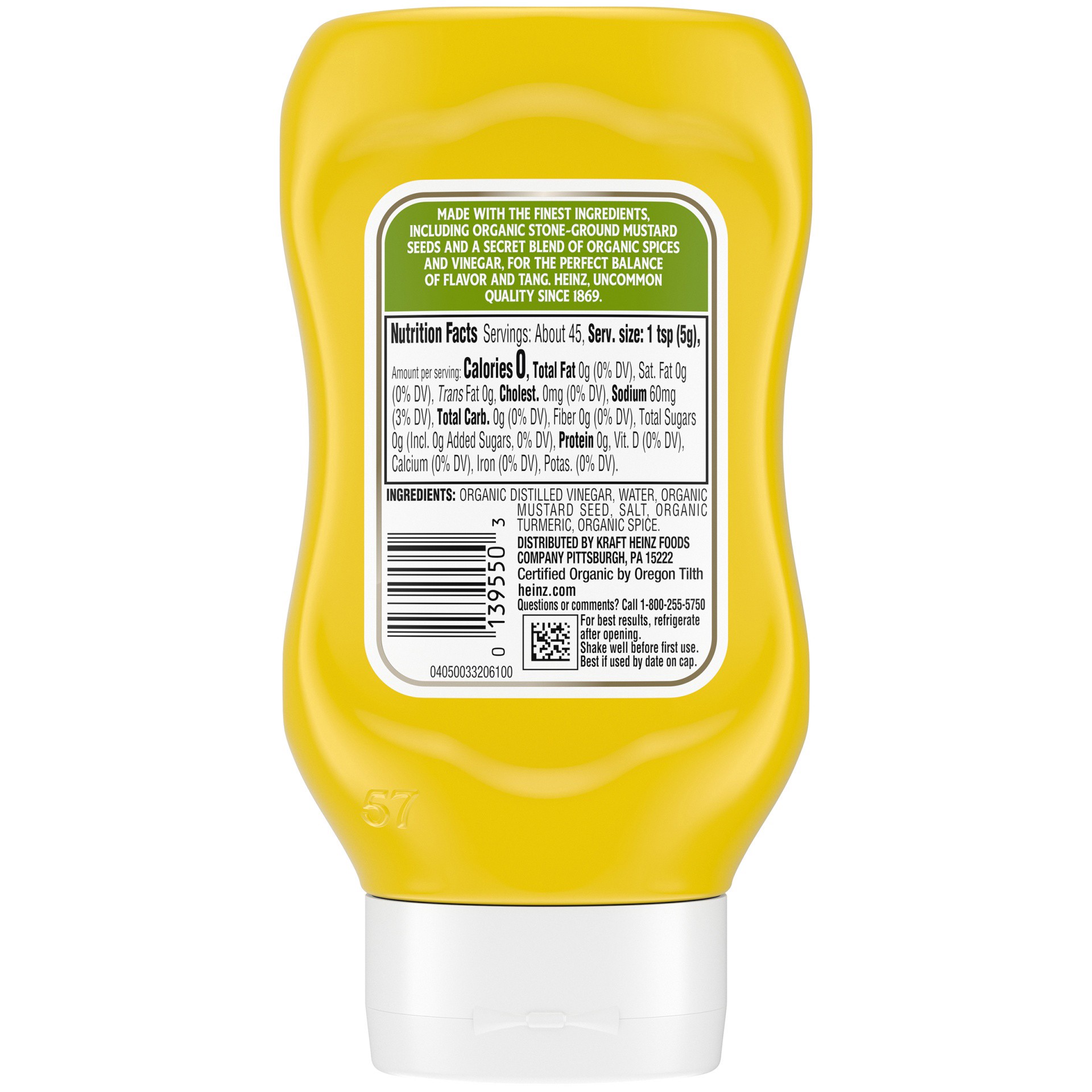 Heinz Organic Yellow Mustard offers the trusted, flavorful taste of classic Heinz Mustard that complements a wide range of foods. Try this yellow mustard on a burger, hot dog or sub sandwich. Made wit…