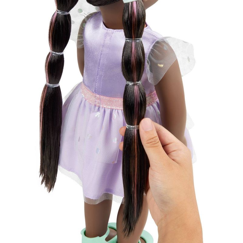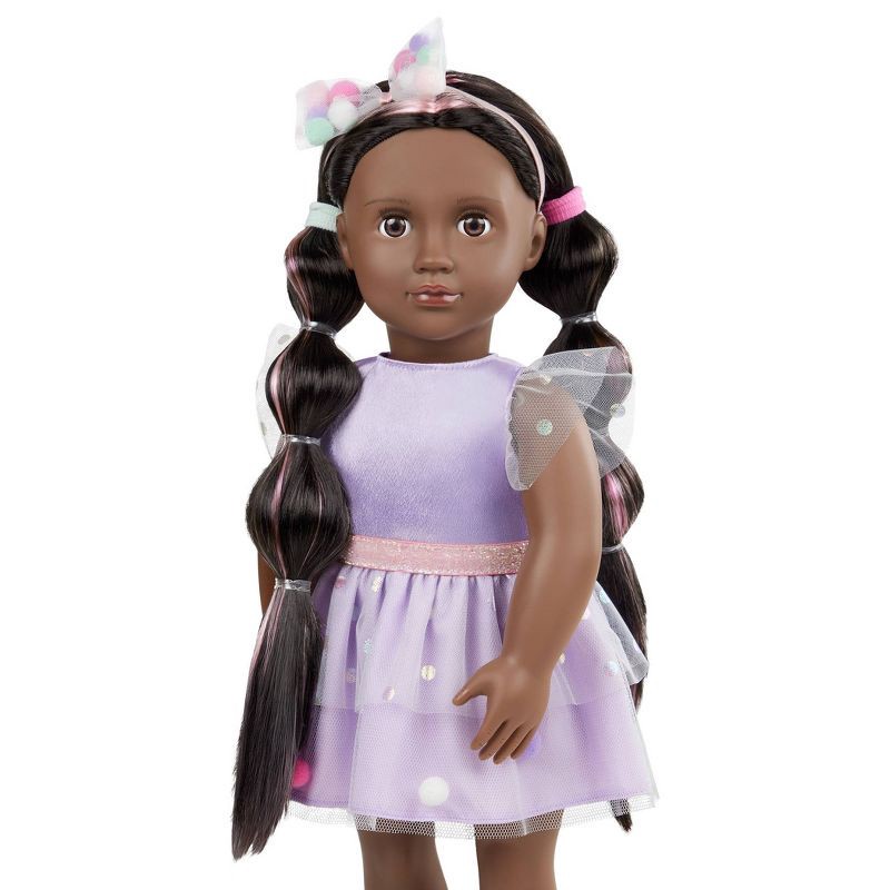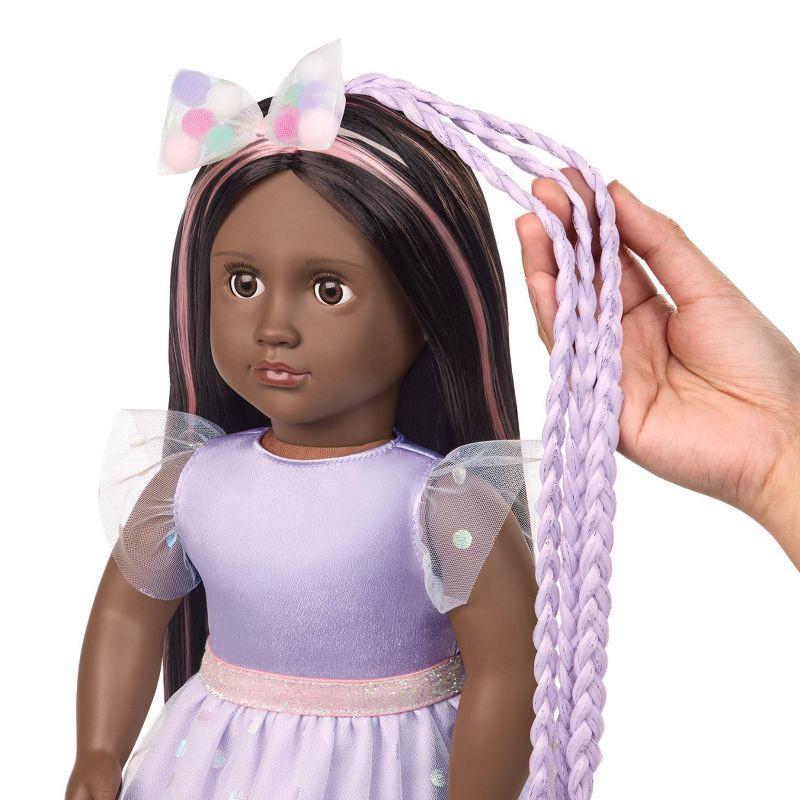 Our Generation 18-inch doll Alexia shines with ultra-long brown hair for kids to style and accessorize, featuring radiant pops of color for extra dazzle! Need more volume? Kids can make Alexia's lilac…