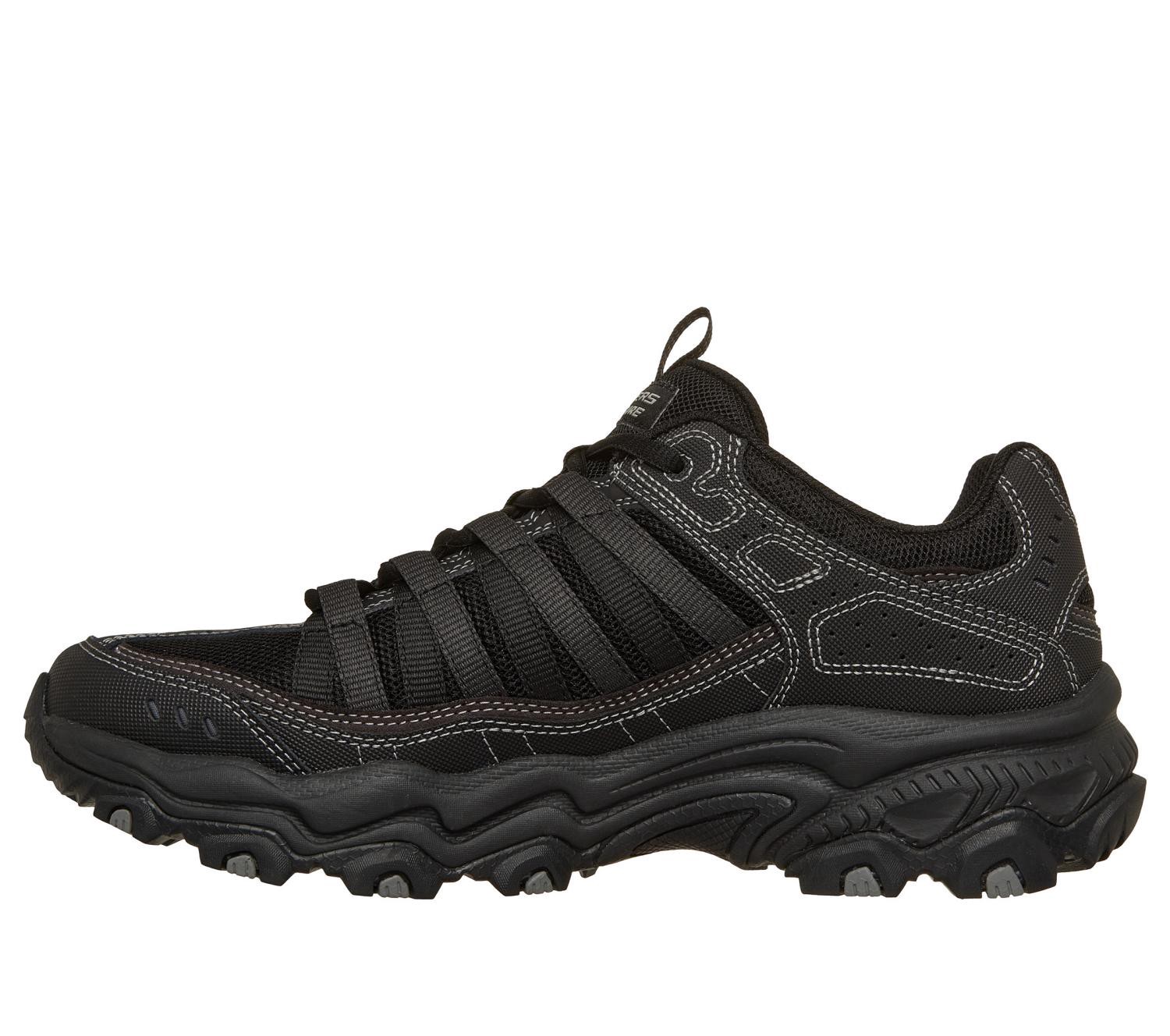Hit the trails in athletic comfort with Skechers Stamina - Afterburn Legacy All Terrain. This outdoor lace-up features a mesh and genuine leather overlay upper with a cushioned Skechers Memory Foam in…