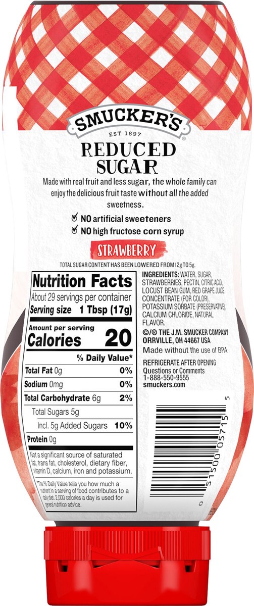 Smuckers Squeeze Fruit Spread Reduced Sugar Strawberry - 17.4 Oz