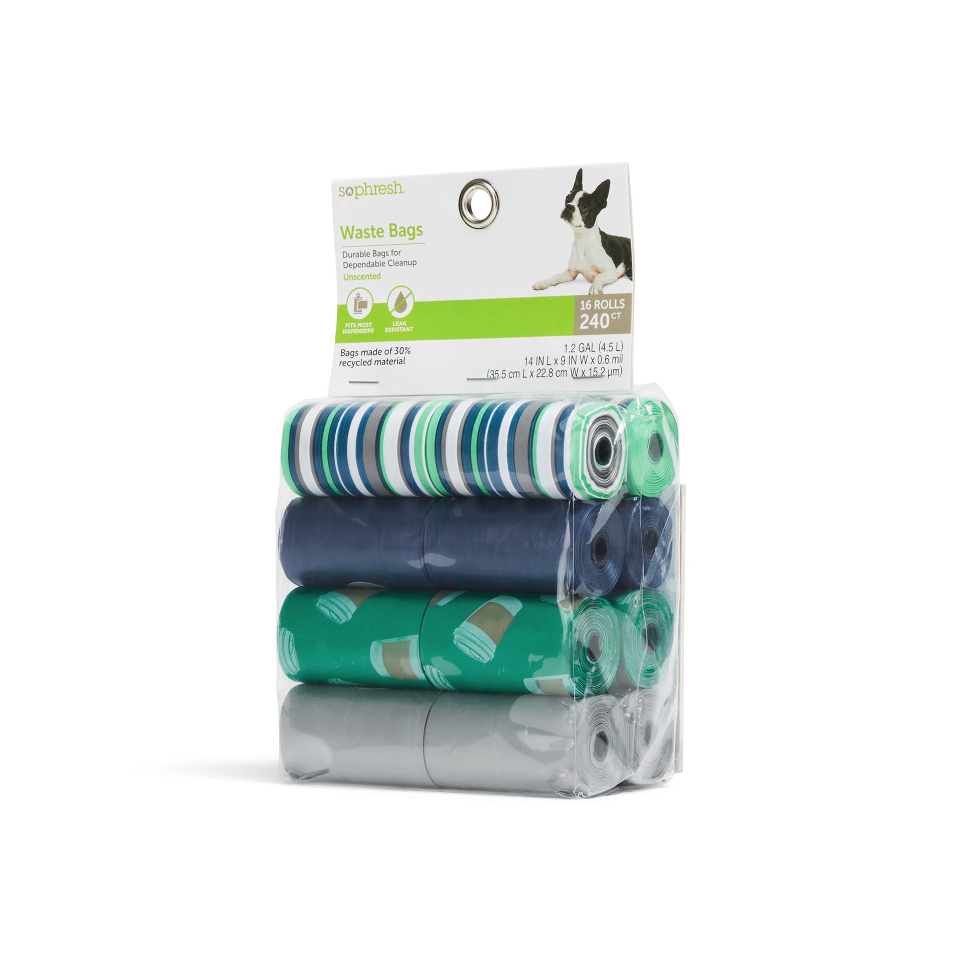 So Phresh Blue & Grey Coffee-Print Unscented Dog Waste Bags, 240 ct