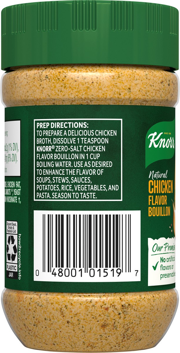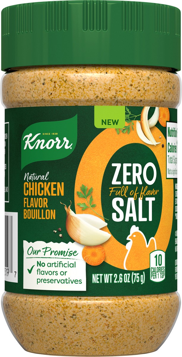 New Knorr Zero Salt Bouillon proves that zero salt does NOT mean zero flavor Made with an expert blend of natural chicken flavor, vegetables and spices, this chicken bouillon gives you all the flavor …