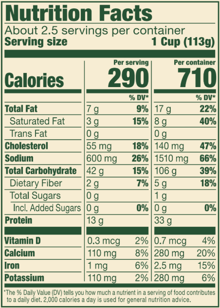 Dough: Wheat Flour, Durum Wheat Semolina, Eggs, Water, Salt, Beta Carotene Color. Filling: Chicken Thighs, Ricotta Cheese (Pasteurized Milk, Pasteurized Whey, Vinegar, Salt), Low Moisture Mozzarella C…