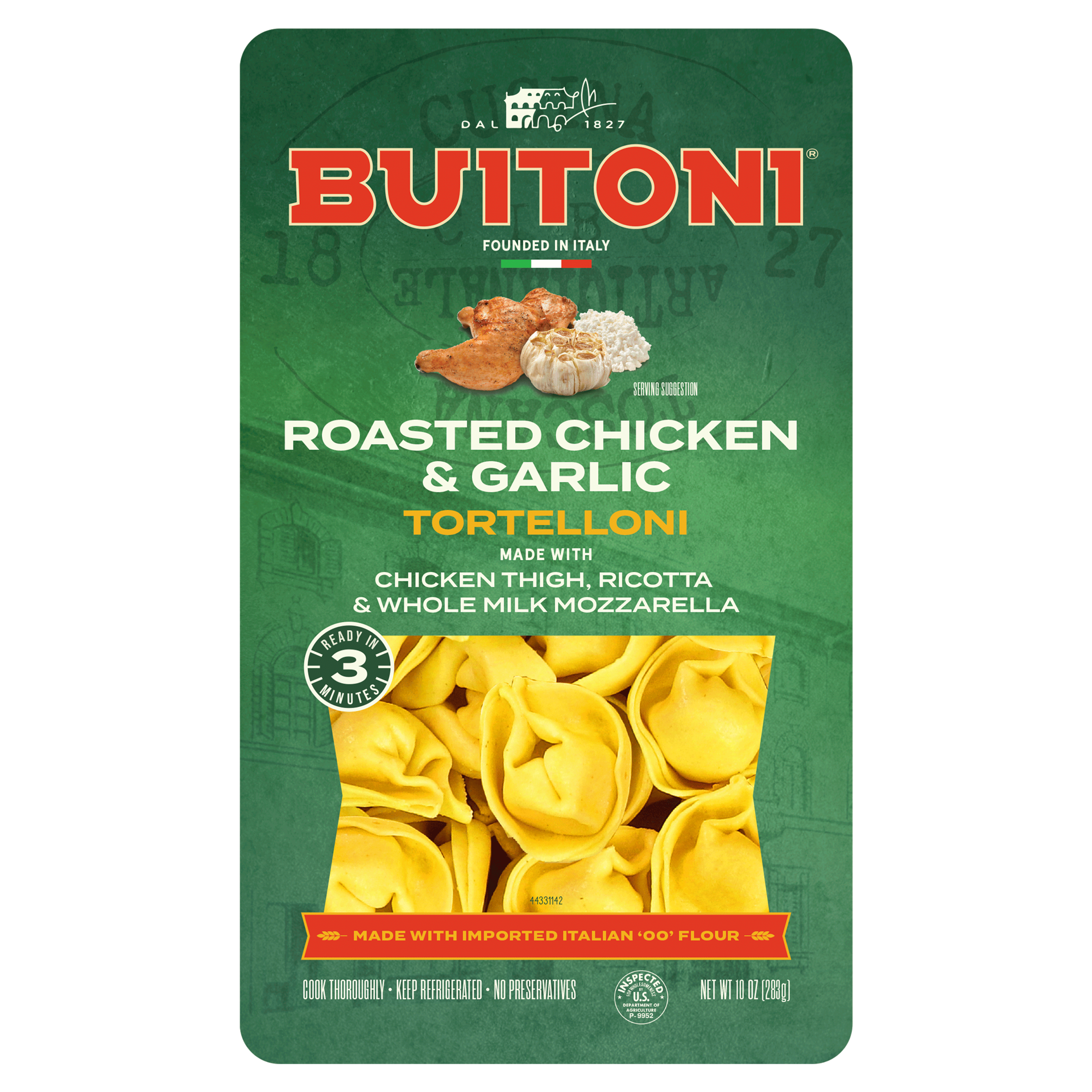 Buitoni''s classic Chicken & Roasted Garlic Tortelloni is now NEW Buitoni Roasted Chicken & Garlic Tortelloni! Stuffed with roasted chicken and garlic, plus ricotta, whole milk mozzarella, and parmesa…