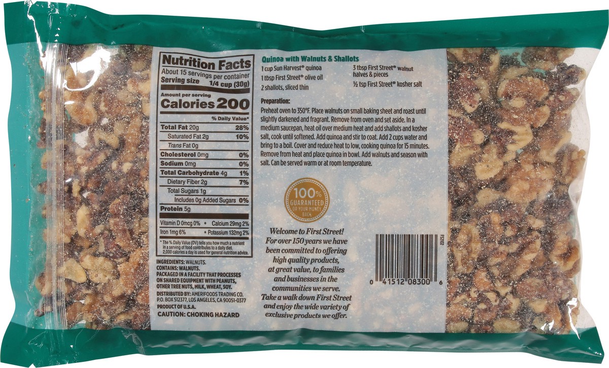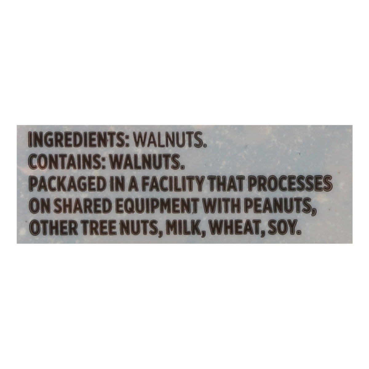 Contains: walnuts. packaged in a facility that processes on shared equipment with peanuts, other tree nuts, milk, wheat, soy.