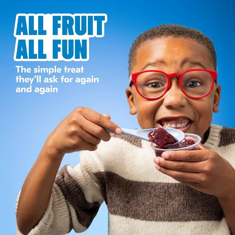 - FRUIT CUP THAT JIGGLES: A spoonable fruit cup made with real fruit purees and juices, with a smooth, jiggly jelly texture.