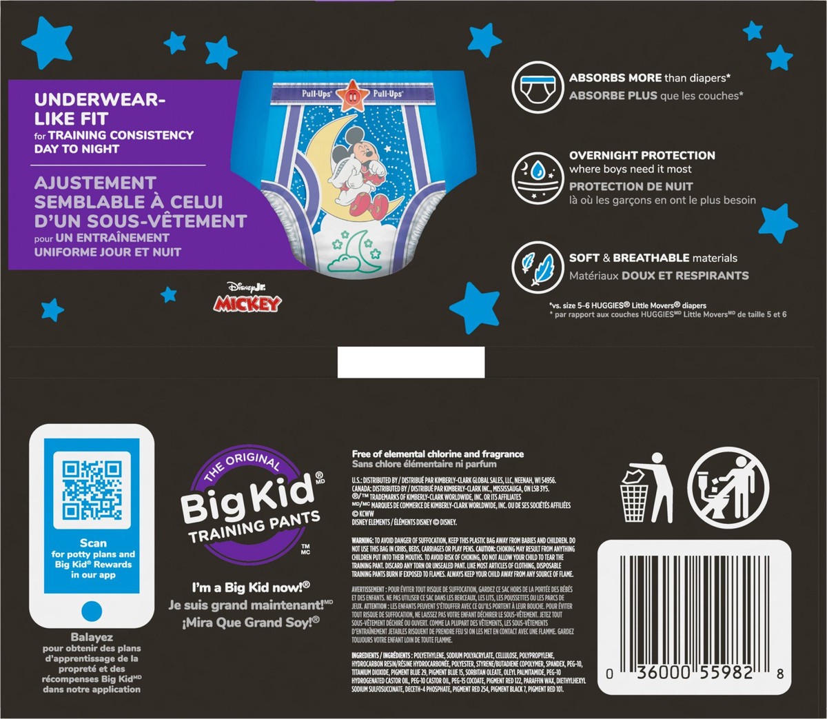 - Features Disney Mickey Mouse and graphics that fade when wet so you can celebrate dry nights with your Big Kid; product and packaging may vary