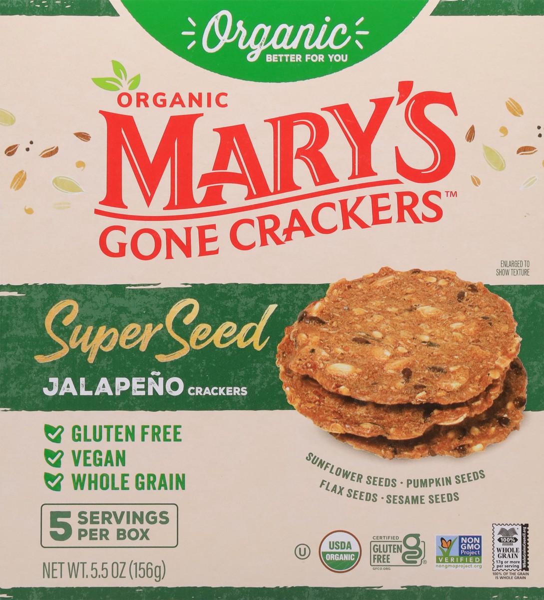Mary's Gone Crackers Super Seed Jalapeno Crackers, Organic, Plant Based Protein, Gluten Free, 5.5 oz